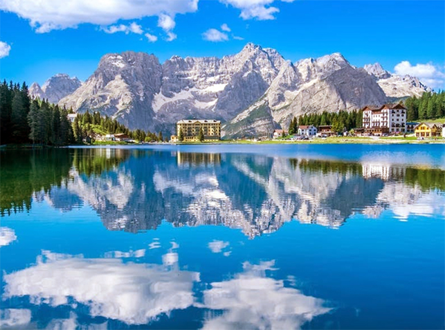 | 제2일 두바이 ㅣ 베네치아 ㅣ 코르티나 | 04:25 - 두바이공항 도착 / 환승(대기: 4시간40분) 09:05 - 두바이공항 출발(EK135-에미레이트/비행시간: 6시간20분) 13:25 - 베네치아공항 도착(시차: -8시간) / 입국수속 코르티나담페초로 이동(147km/차량-약2시간) 코르티나 담페초 시내관광 후 트레킹 짐 정리 석식(현지식) / 호텔투숙 조 : 기내식 / 중: 기내식 / 석: 현지식 호텔 마조니(2인실) 예정 |