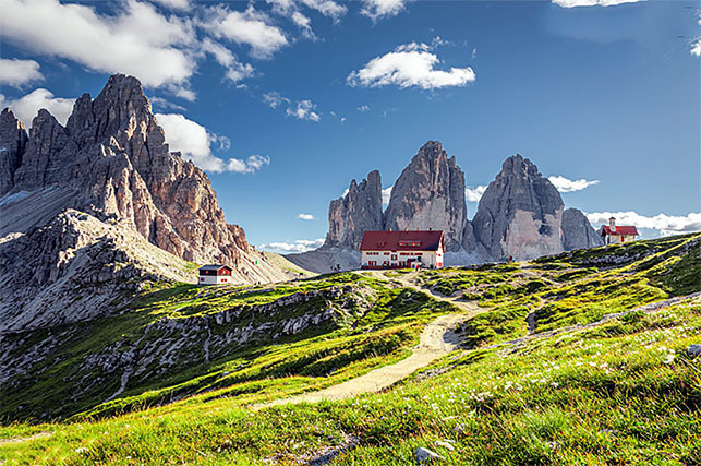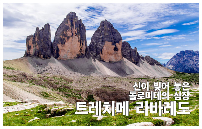 | 제4일 코르티나 ㅣ 아우론즈 ㅣ 로카델리 ㅣ 코르티나 | 기상 / 조식 후 기상 / 조식(객실에서 개별조식) 후 ☞ 전날 저녁 21시경 아침식사용 빵과 음료 제공 06:30 - 아우론조산장(2,320m)으로 이동(차량-30분) ☞ 차량 정체로 가급적 아침 일찍 출발합니다. ☞ 미동 중 미주리나호수 관광 07:15 - 돌로미테 트리치메 트레킹 ☞ 아우론조산장 - 라바레토산장(2344m) - 로카텔리산장(2348m) - 아우론조산장 ☞ 트레킹거리 : 9.6km / 예상시간 : 4시간 ☞ 난이도: ●◐○○○ / 풍경: ●●●●● ☞ 아우론조산장에서 중식(현지식) 15:00 - 호텔 귀환 후 시내산책 18:30 - 석식(현지식) 및 휴식 조: 호텔식 / 중: 산장식 / 석: 현지식 상동 |