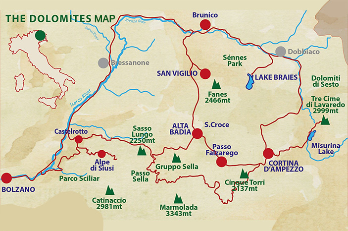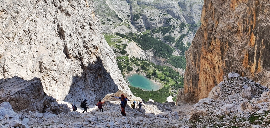 | 제5일 코르티나 ㅣ 브레이에스 ㅣ 비엘라 ㅣ 세네스 ㅣ 페데루 | 기상 / 조식 후 08:00 - 브레이에스 호수로 이동(전용차량-1시간) ♣ 산행에 필요한 장비만 배낭에 휴대하며 캐리어는 숙박지로 배송됩니다. 09:00 - 돌로미테 Alta Via-1 코스 트레킹-1 ☞ 브레이에스 호수(1,494m) 출발 - 소라포노 고개(2,388m) - 비엘라산장(2,300m) - 세네스산장(2,327m)-페데루산장(1,548m) ☞ 트레킹거리 : 14.8km / 예상시간 : 6~7시간 ☞ 난이도: ●●◐○○ / 풍경: ●●●●○ 16:00 - 산장으로 차량이동(미니밴-5분) 산장 체크인 / 휴식 석식(호텔식) 조: 호텔식 / 중: 산장식 / 석: 호텔식 라고 델타 크레타 (2인실) 확정 |