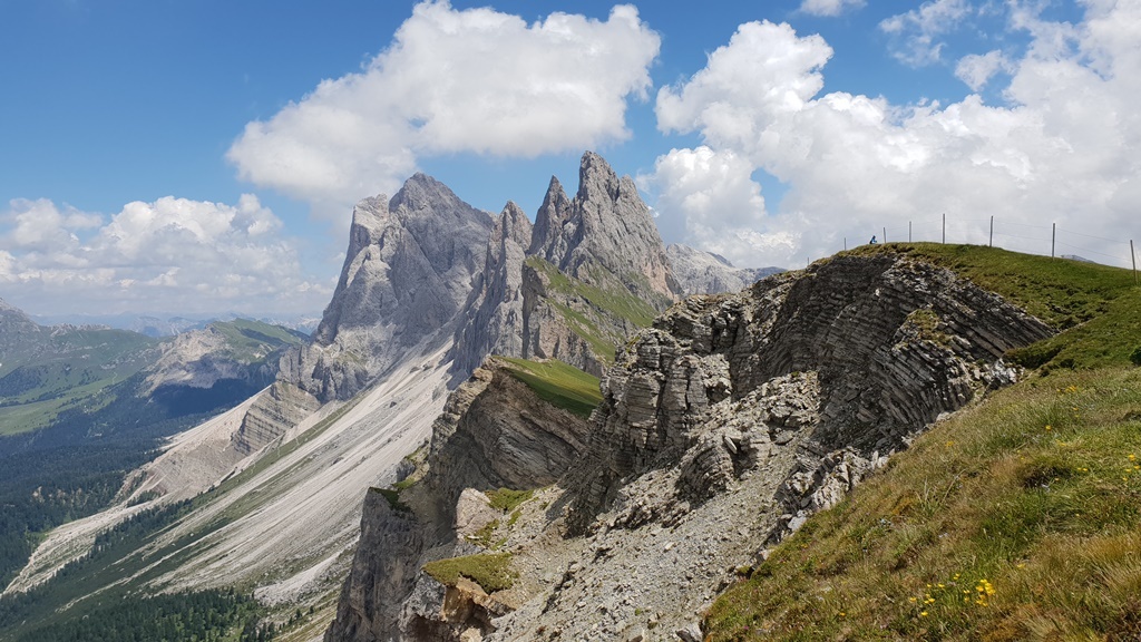 | 제8일 스코아톨리 ㅣ 파소지우 ㅣ 피우메 ㅣ 스타울란자 ㅣ 카나제 | 기상 / 조식 후 08:00 - 돌로미테 Alta Via-1 코스 트레킹-4 ☞ 스코야톨리 - 파소자우(2,236m) - 포셀라자우(2,360m) - 몬데발고원 - 암브리졸라고개(2,277m) - 피우메산장(1,917m) - 스타울란자(1,766m) ☞ 트레킹거리 : 16.0km / 예상시간 : 6~7시간 ☞ 알타비아-1 트레킹 종료 ☞ 난이도: ●◐○○○ / 풍경: ●●●◐○ 16:30 - 카나제이로 이동(46km/1시간) 호텔체크인 / 수영장 및 스파 이용가능 석식및숙소휴식 호텔 : 카나제이 호텔메딜(2인실) 확정 |