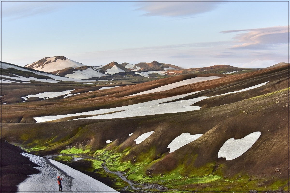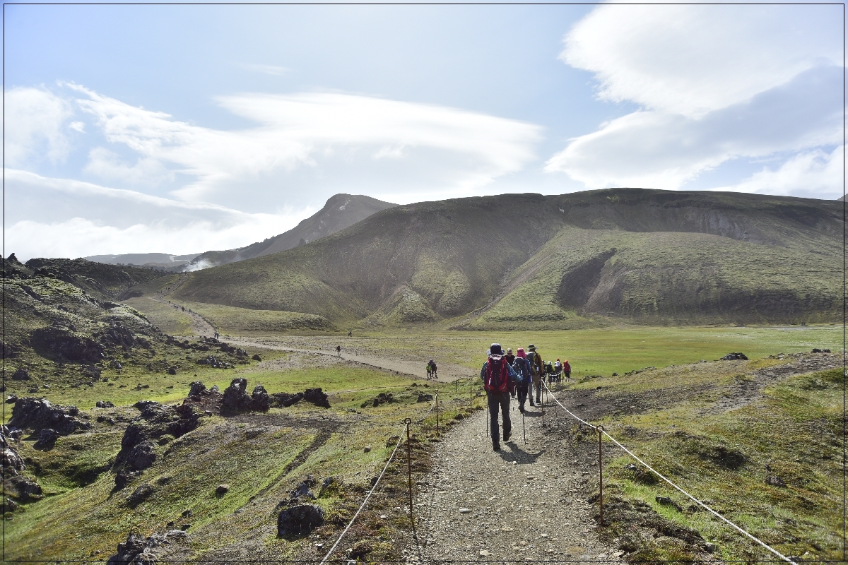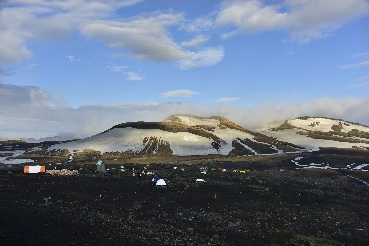 | 제3일 | 레이캬비크 - 란드만날라우가 - 크라푸틴누스케 기상 / 조식 후 06:30 - BSI터미널로 도보이동(5~10분) BSI터미널에서 가이드 미팅 및 카고백 운반차량 미팅 07:00 - 란드만날라우가르(Landmannalaugar)로 이동(175km-4시간) 11:15 - 란드만날라우가르 도착 / 산행 준비 및 중식(빵, 음료수, 과일) 라우가베구르(Laugavegur) 트레킹-1 ☞ 란드만날라우가르-크라프틴누수케(Hrafntinnusker) ☞ 거리 : 12km / 시간 : 4~5시간 / 고도차 : +470m 산장도착 / 휴식 석식(산장식) 및 숙소휴식 크라푸틴누스케 (산장 도미토리 또는 캠프 | ||