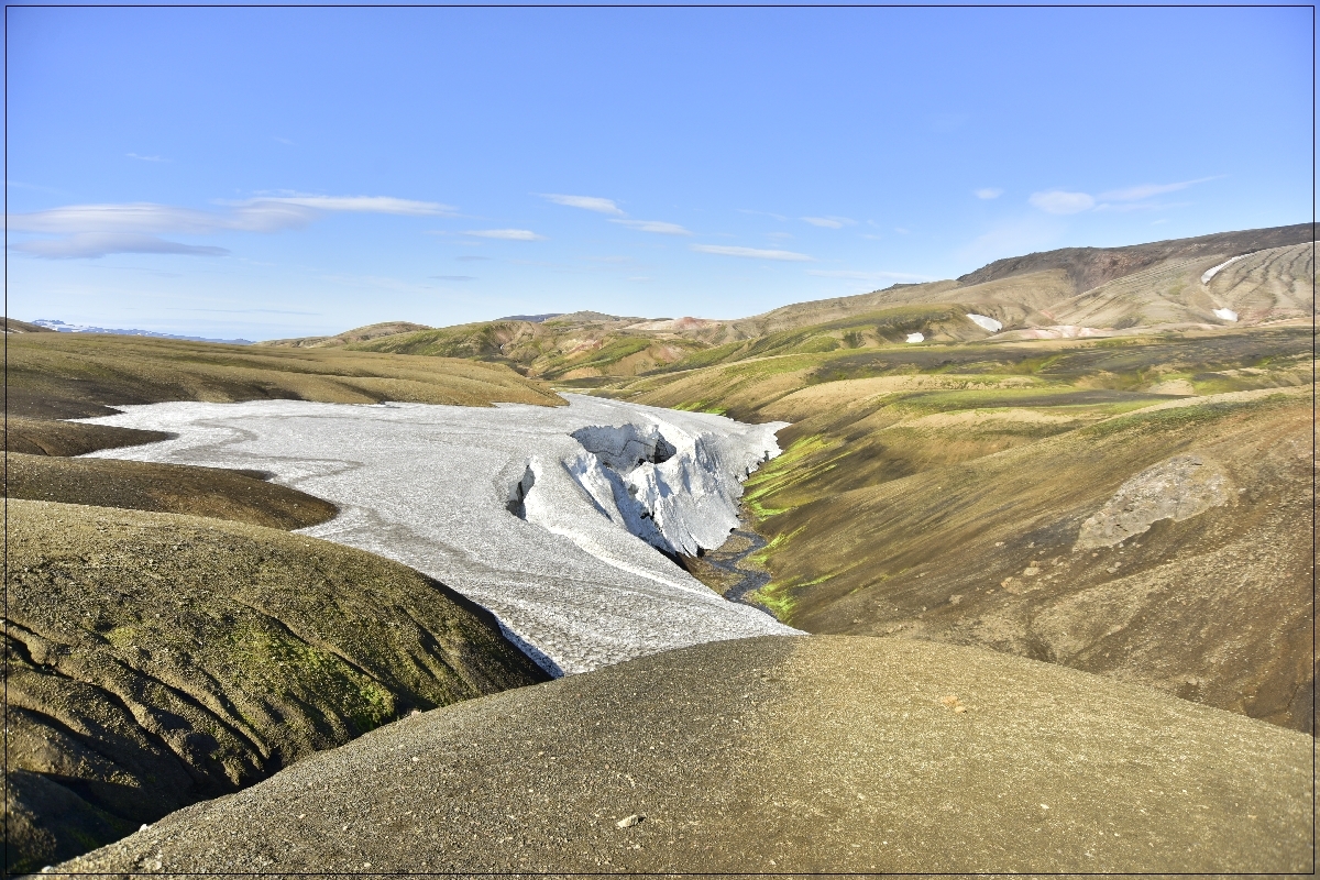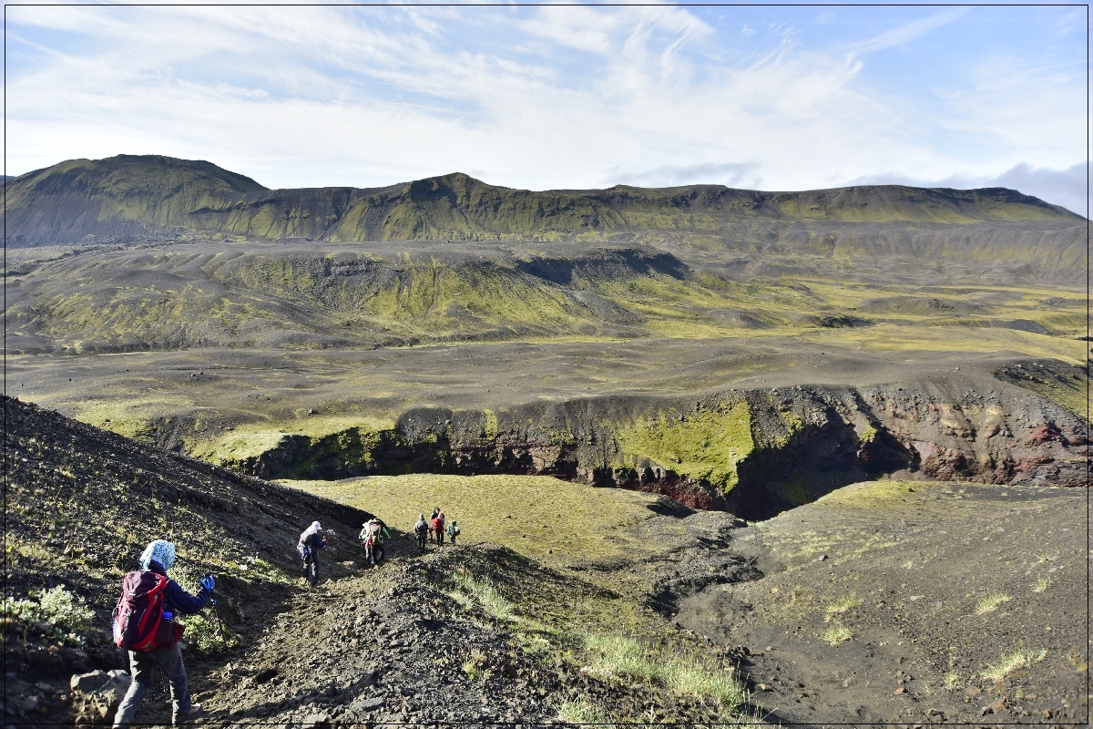 | 제5일 | 아울타바튼 - 스토라술라 - 매리팰스상두르 - 핫타펠 - 마르카르이쇼트스기요프르 - 엠스트르르 기상 / 조식 후 라우가베구르(Laugavegur) 트레킹-3 ☞ 아울타바튼(Alftavatn)-스토라술라(Mont Strasura)-매리팰스상두르(Maelifellsandur) -핫타펠(Hattafell)-마르카르이쇼트스기요프르(Markarfljótsgljúfur)-엠스트루(Emstrur) ☞ 거리 : 16km / 시간 : 6~7시간 / 고도차 : -40m ☞ 일정상 도강이 있으므로 샌달 준비 산장도착 / 석식(산장식) 및 숙소휴식 산장식 / 중: 행동식 / 석: 산장식 엠스트르르 (산장 도미토리 또는 캠프) | ||