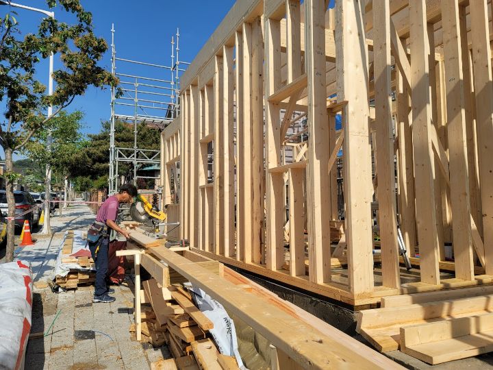 *목구조공사 5일차, 4명,계단 및 보막이작업