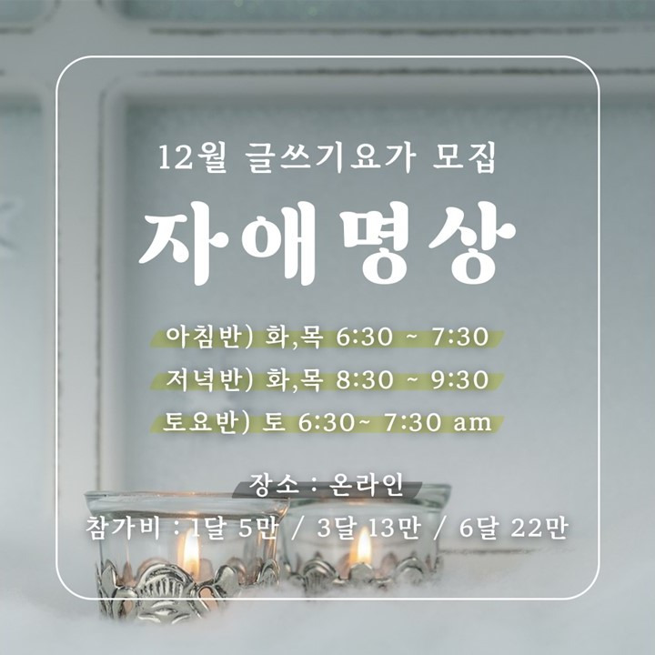12월 글쓰기 요가의 주제는 < 자애명상 > 입니다.