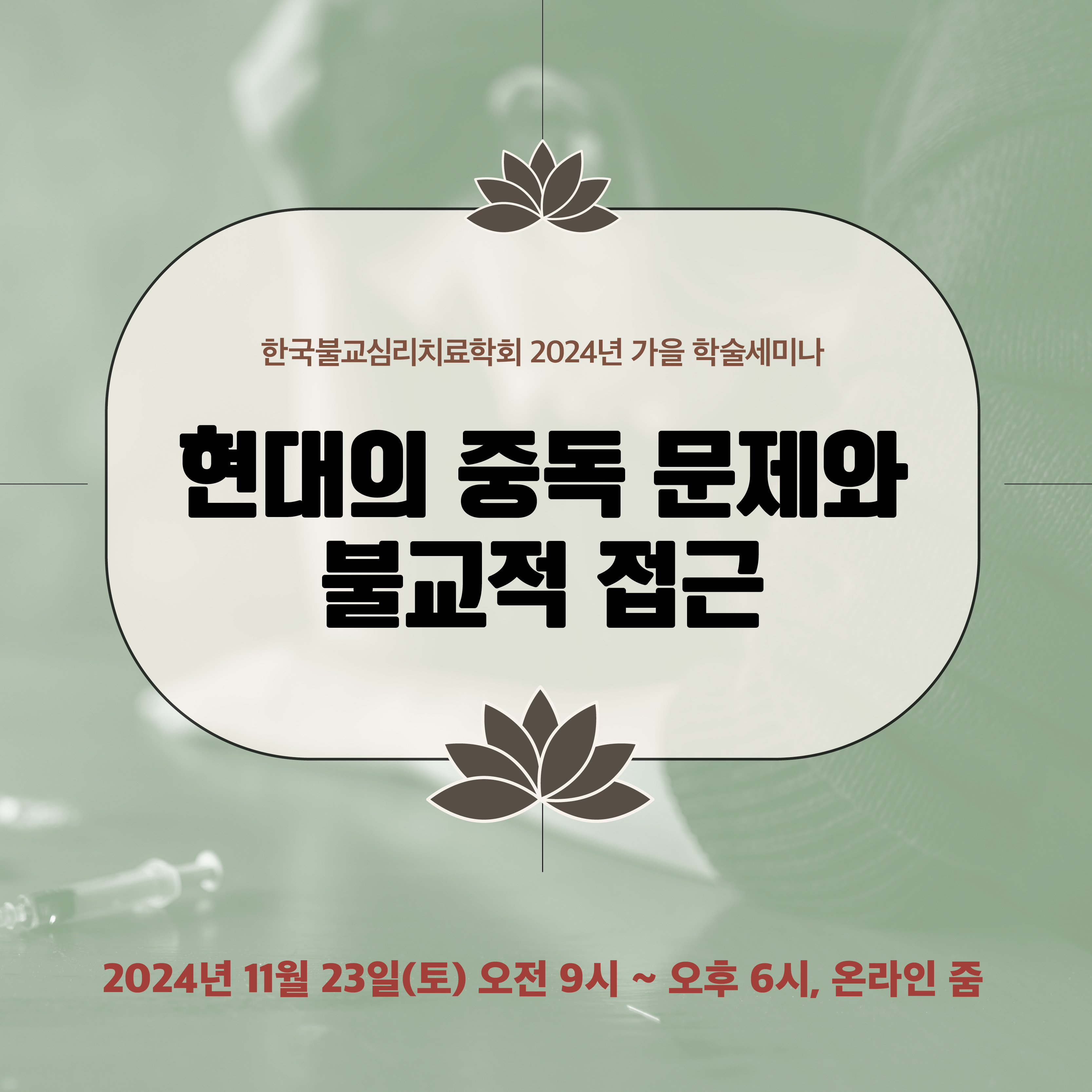 이번 학술대회에서는 중독의 본질과 현황, 불교적 관점의 중독에 대한 이해, 중독의 뇌신경과학적 접근, 스키마 치료 및 마음챙김 기반 치료 그리고 중독자 가족의 특성과 치유와 같은 다방면의 강연을 통해 함께 공부하고 의견을 나누는 시간을 가지려고 합니다. 많이 참석해주셔서 우리 자신과 다른 모든 이들에게 도움이 되는 학술대회로 만들어주시길 부탁드립니다.