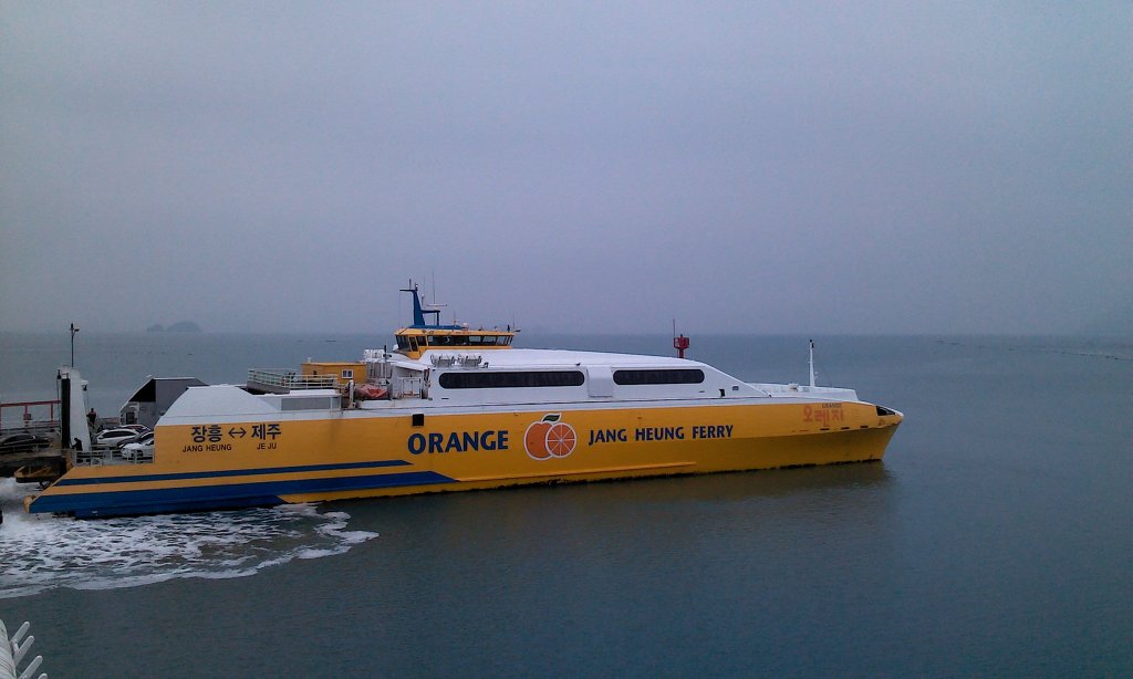 전남 장흥에서 제주 성산포항까지 1시간 50분에 운항했던 오렌지호 총톤수 2100톤 ,선속 40kn 입니다.