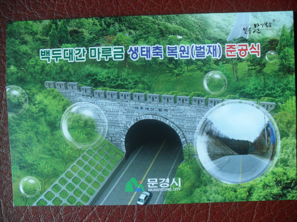 ♤,일시: 2013년 7월 3일 (수)오후15:00~ ♤,장소:문경시 동로면 적성리 산112-1 (벌재터널) ♤,행사내용:식전행사(14:30~15:00) 풍물패 놀이 ♤,공식행사 15:00~15:30 ♠,백두대간 마루금 생태축 복원 경과보고 ♠,축사.표지석 가림천 당기기 민족정기 회복과 생태축 연결의 역사적 사업을 완료하는 이화령에 이어 그 두번째 백두대간 마루금 생태축 복원 (벌재)준공식에 귀하(전회원)를 모시고자 합니다. 뜻 깊은 이번 행상에 바쁘시더라도 꼭 참석하시어 자리를 빛내주시 바랍니다.