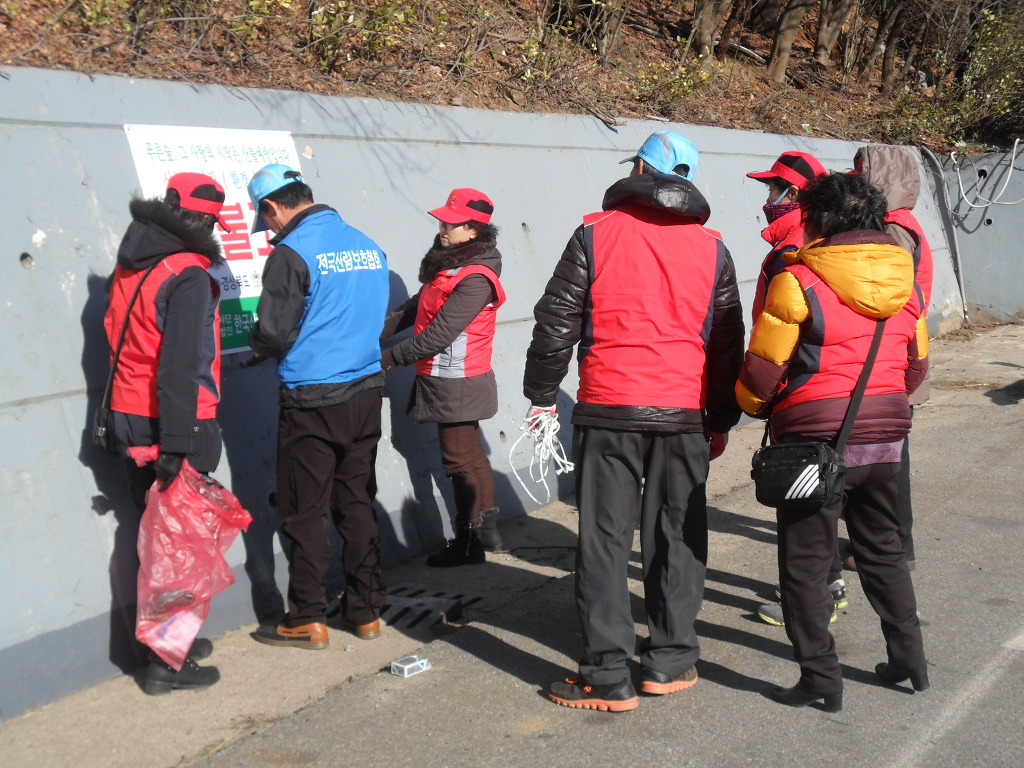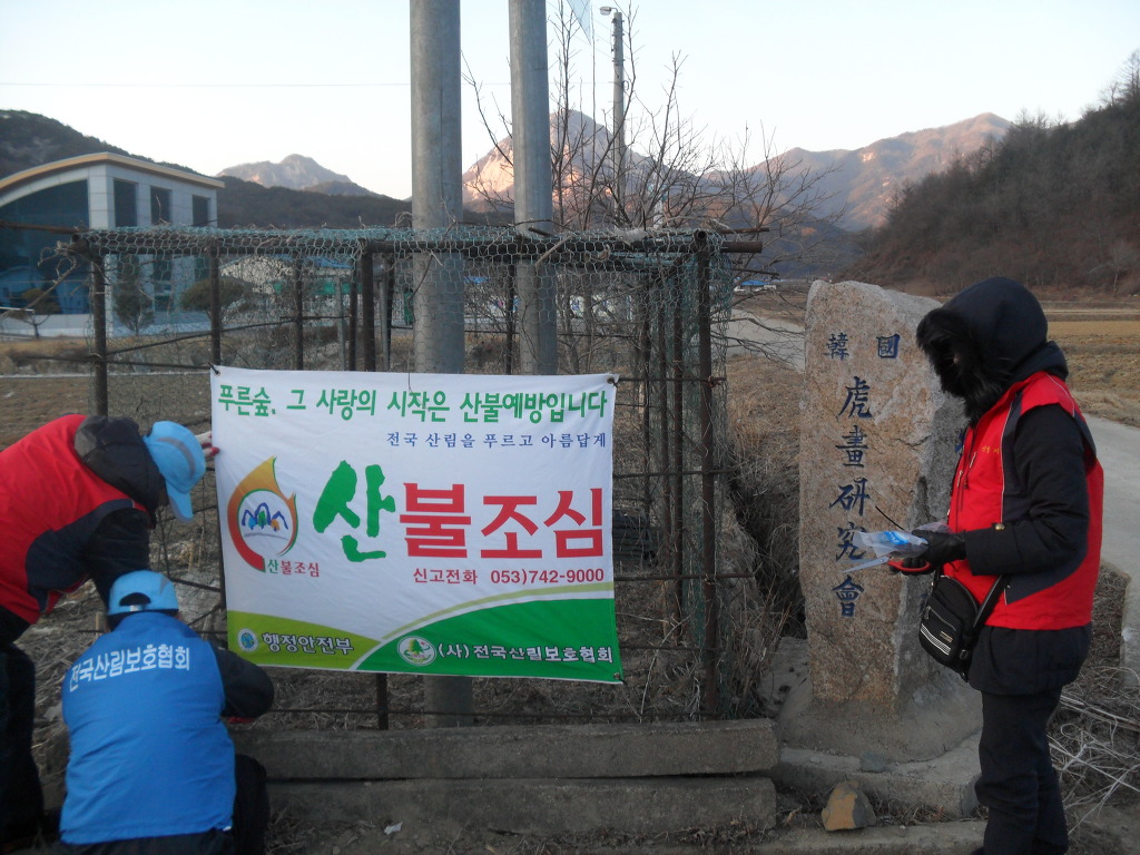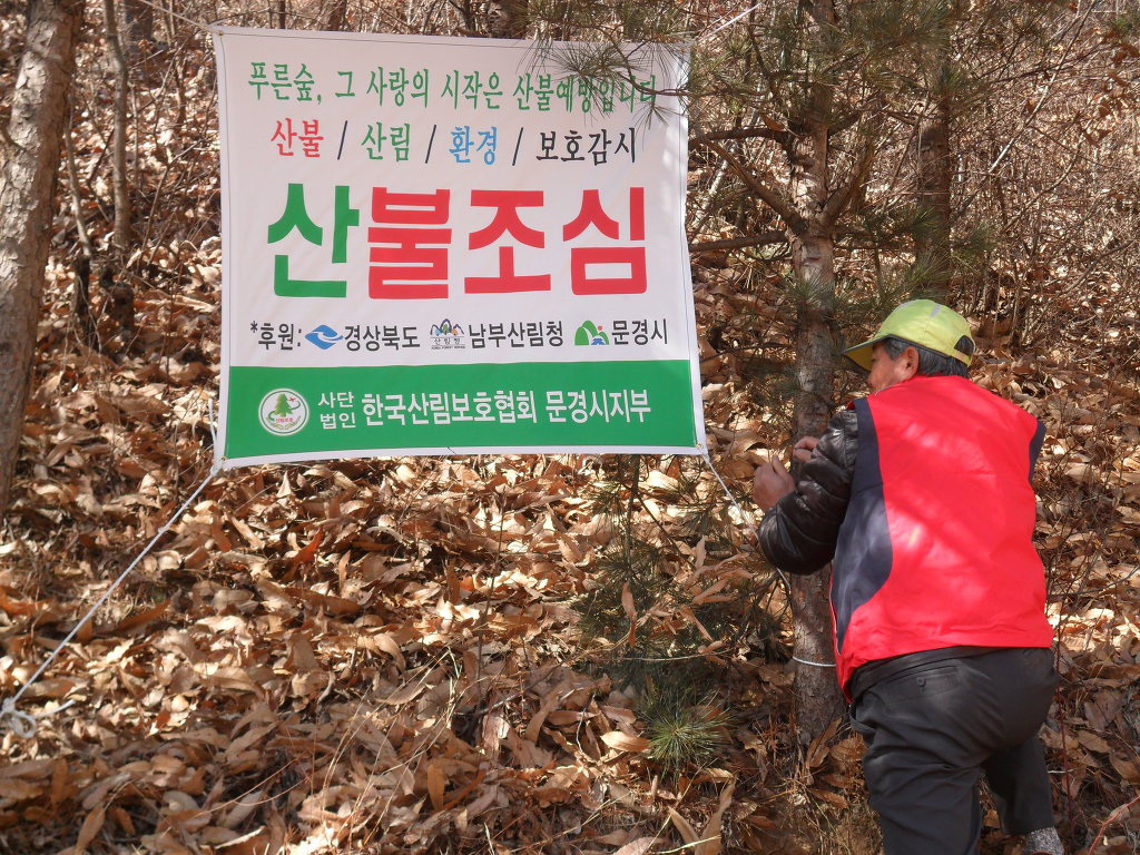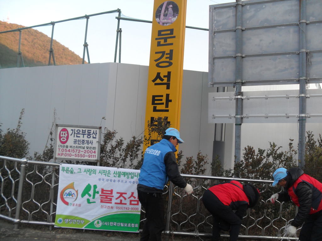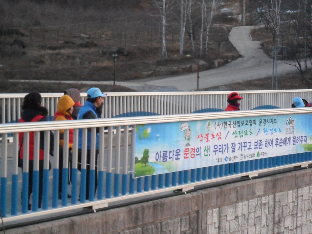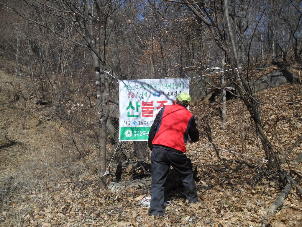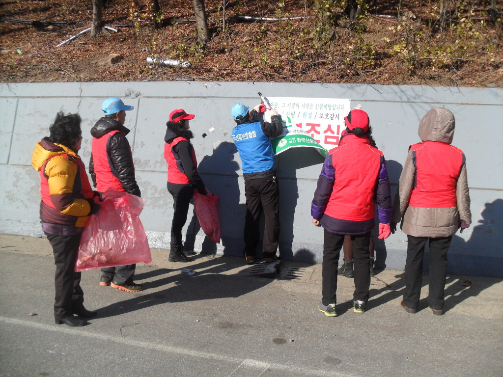 ※활동사진(2015.02.12.(목)제2차) ♣ 행사내용 (사)전국산림보호협회 문경시 지부는 급변하는 세계 환경공해와 맞서 녹색성장을 선도하는 산림강국이 되고자 노력 하고 있다. 이에 “건강한 숲 풍요로운 산 행복한 국민”이라는 산림청의 슬로건 아래 본 지부 자원봉사자는 심는 일도 함께하지만 심은 나무를 가꾸는 정책 일환으로써 환경자원인 문경시14개 읍면동 산림일대를 산림보호캠페인과 주변정화 활동 산불조심 현수막 설치함