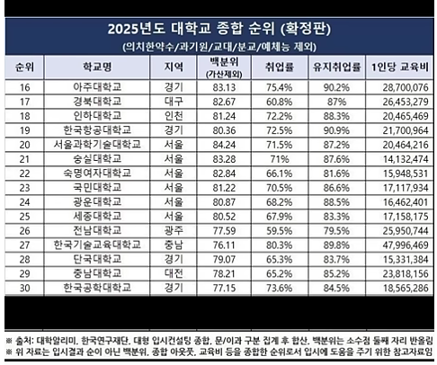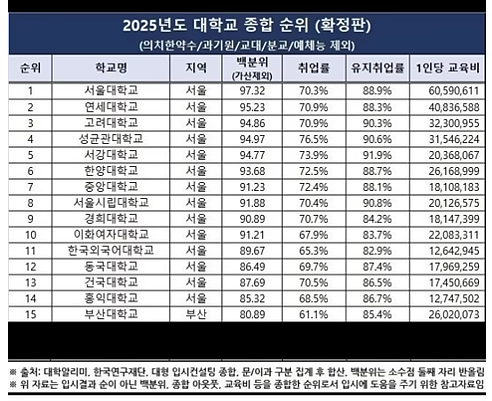 2025년도 대학교 종합 순위 작성자바람처럼|작성시간26.01.17|조회수10 목록 댓글 0 글자크기 작게가 글자크기 크게가 다음검색 현재 게시글 추가 기능 열기 북마크 공유하기 신고 센터로 신고 댓글 댓글 0 댓글쓰기 답글쓰기 댓글 리스트