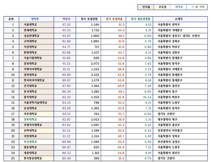 2026 대학 순위 (정시 입결 2025 종합적 분석) 작성자바람처럼|작성시간26.01.20|조회수93 목록 댓글 0 글자크기 작게가 글자크기 크게가 다음검색 현재 게시글 추가 기능 열기 북마크 공유하기 신고 센터로 신고 댓글 댓글 0 댓글쓰기 답글쓰기 댓글 리스트