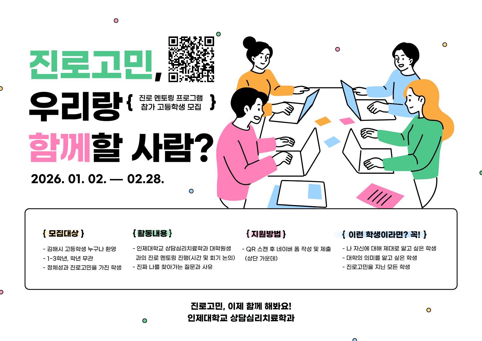 제목: 인제대학교 상담심리치료학과에서 진로멘토링 참여자를 모집하고 있습니다 ! 💕