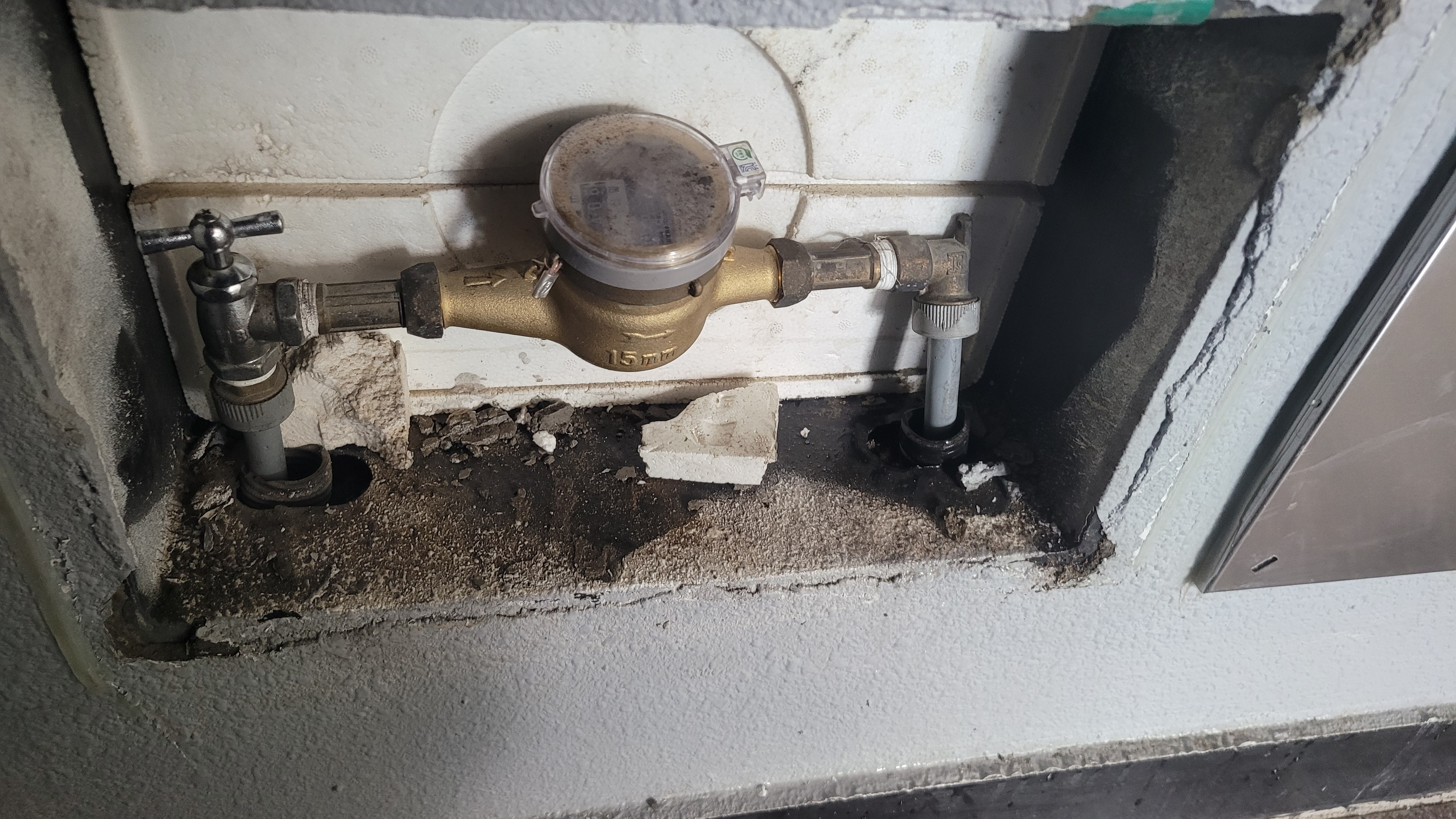 계량기를 잠가두어 물 올라오지 못하게 막아둔 상태입니다.
