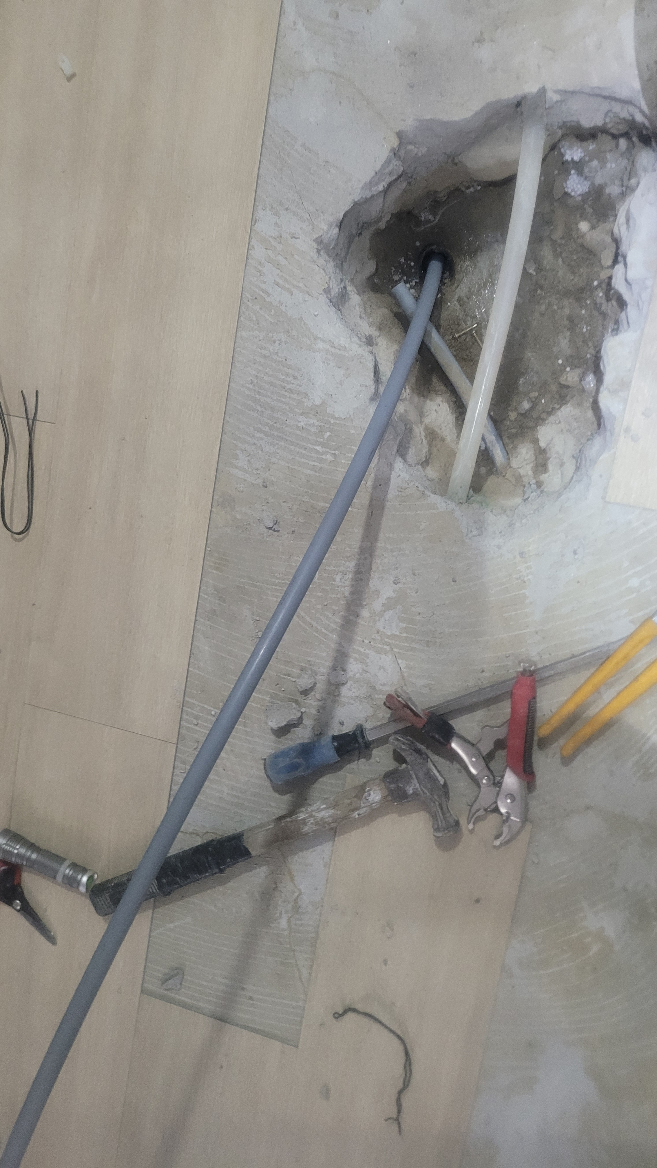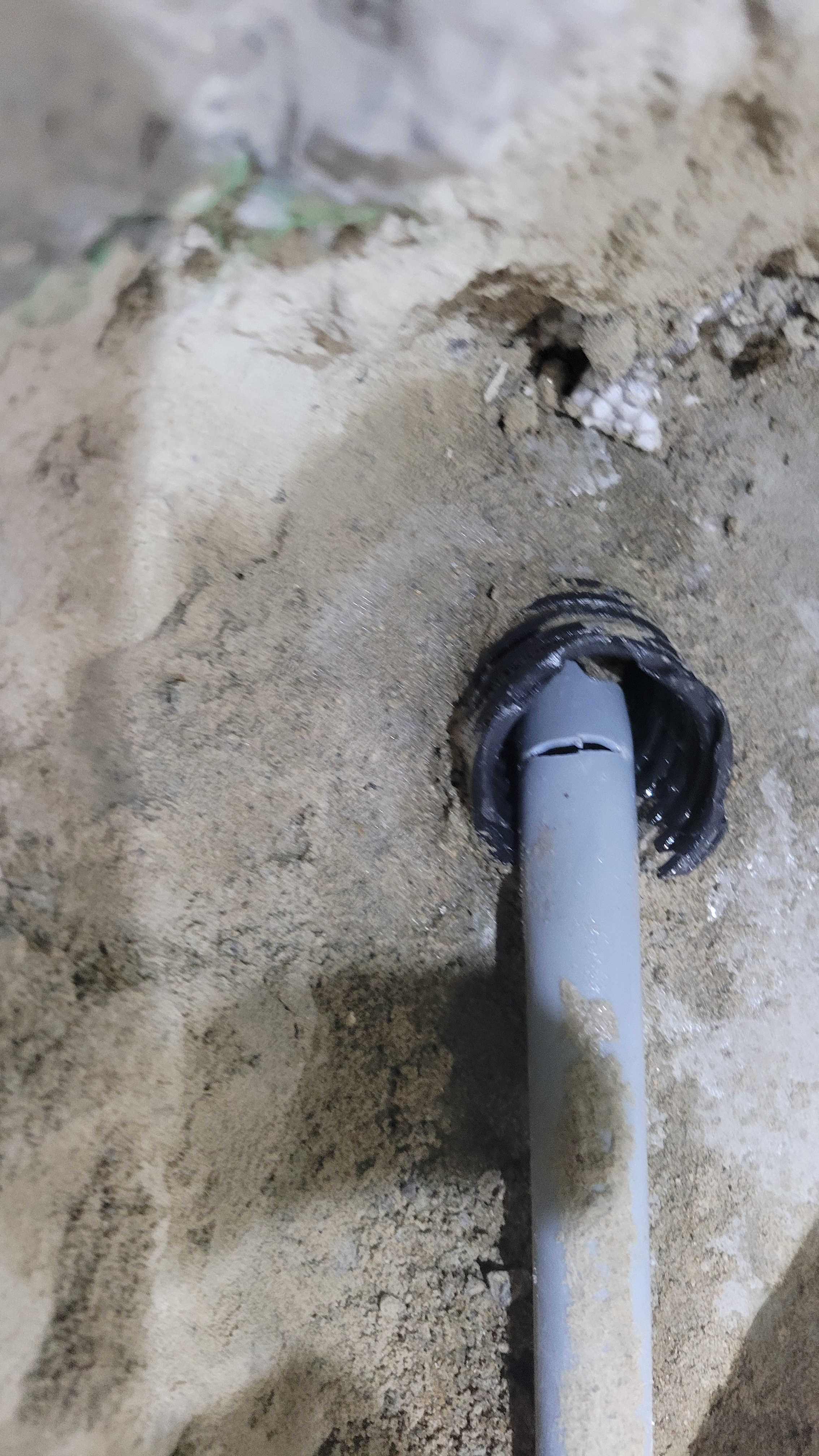 거실 중앙 바닥을 게속 굴착해 내려가니 이렇게 수도배관이 나옵니다.