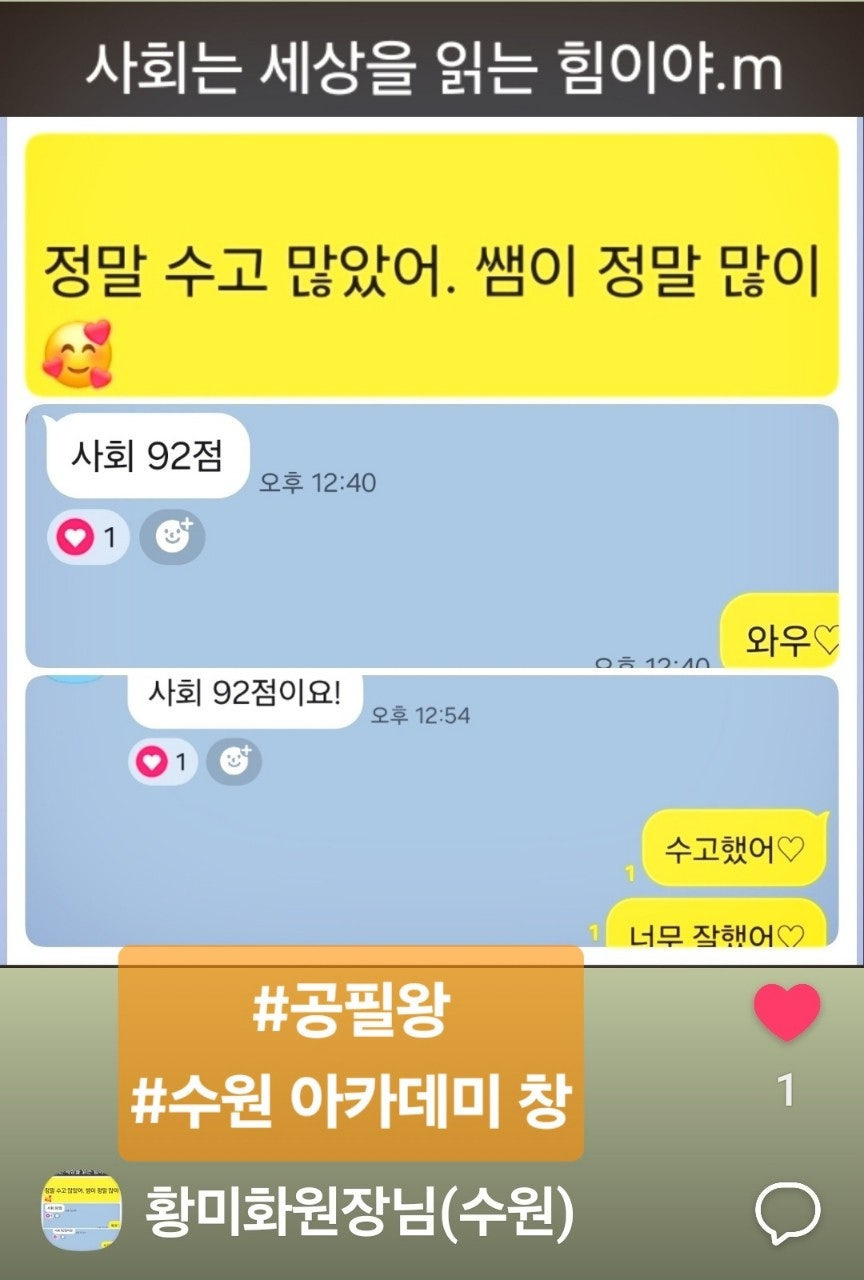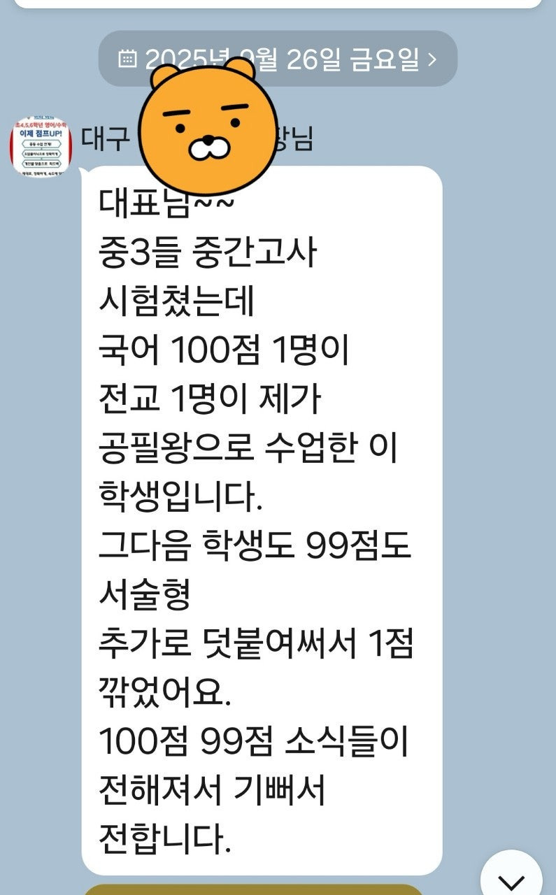 공필왕 선생님은 행복합니다. 작성자관동동종현맘77|작성시간25.12.10|조회수44 목록 댓글 0 글자크기 작게가 글자크기 크게가 <행복한 선생님들~^^> (의정부 녹양 센터) 행복한 공필왕! 신나는 공필왕!대한민국 대표 교과 정독 개념 필기 학습 브랜드 다음검색 현재 게시글 추가 기능 열기 북마크 공유하기 신고 센터로 신고 댓글 댓글 0 댓글쓰기 답글쓰기 댓글 리스트