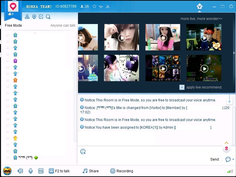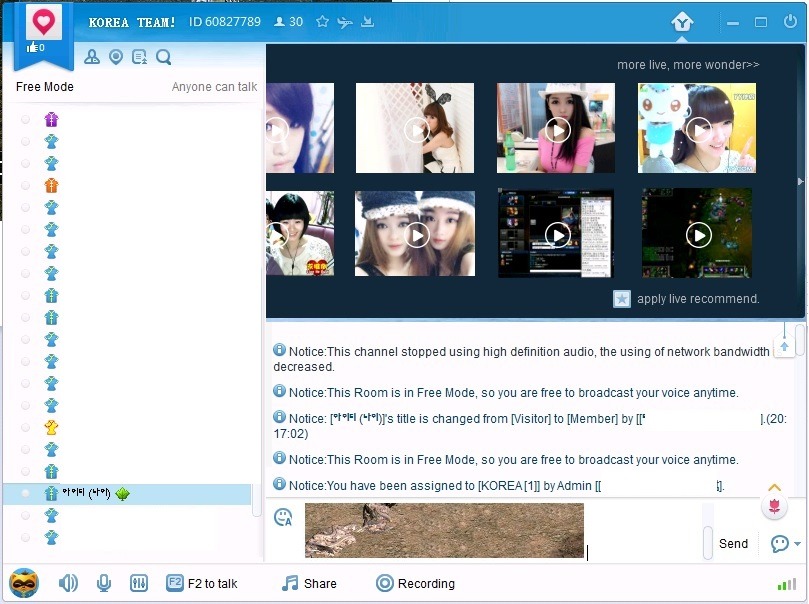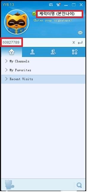 ※메인 방 입장 후 카페와 YY 닉네임을 같게 하시고 카페 등업 신청.
