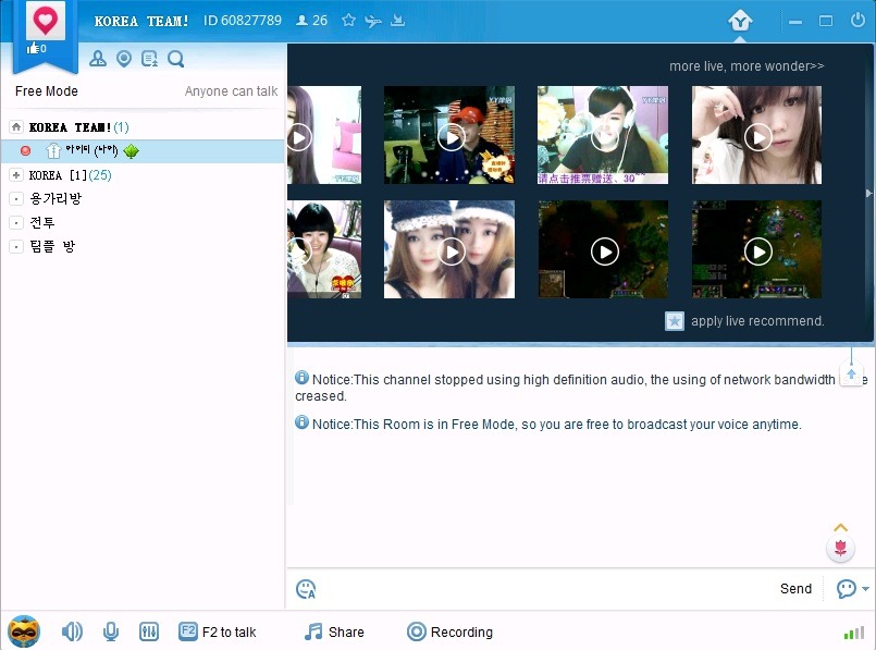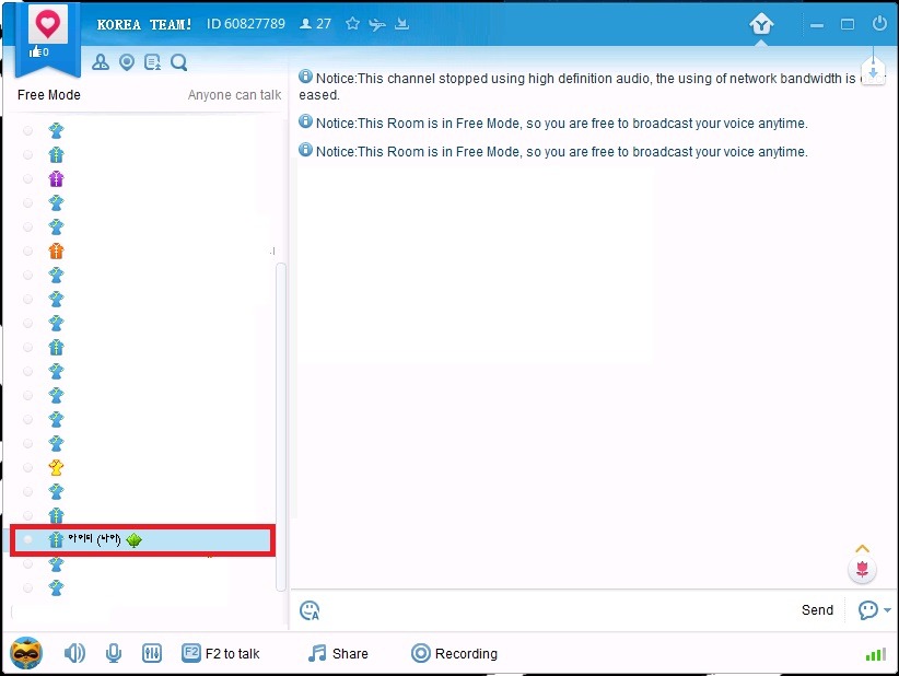 처음 Korea Team 방으로 들어가게 됩니다.(Guest 방, 채팅불가)