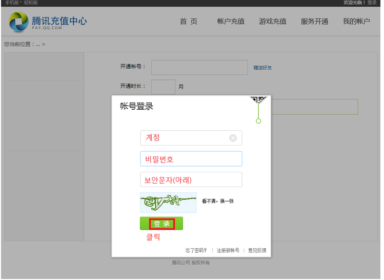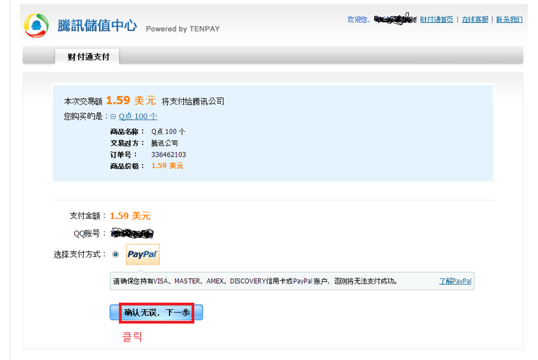 이제 qq포인트를 충전하기 위해 http://pay.qq.com 으로 이동합니다.