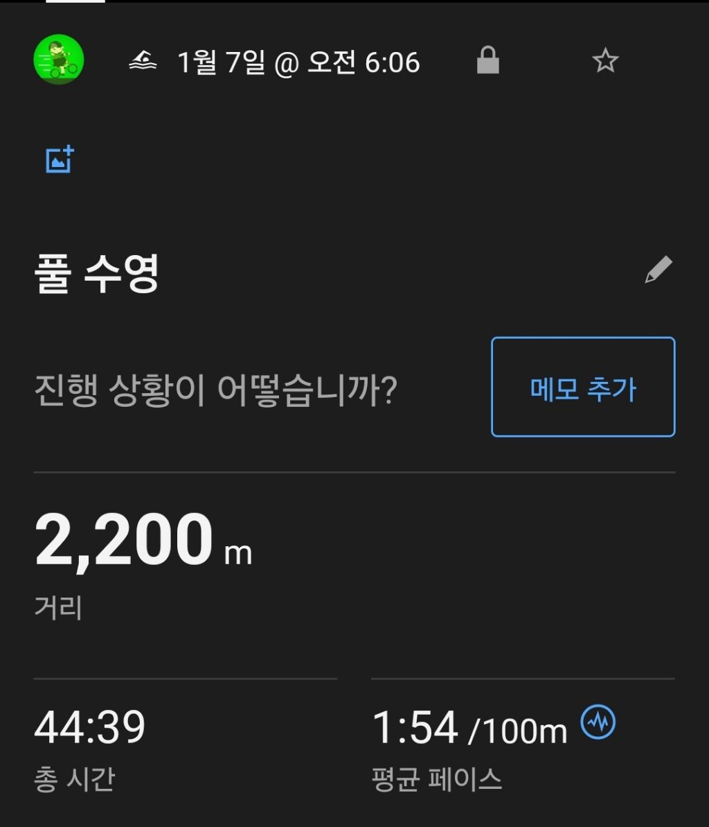 1월 수영미션 수행중 작성자정수|작성시간25.01.07|조회수68 목록 댓글 2 글자크기 작게가 글자크기 크게가 목표가 없으니 꾀가 생겨서나름 목표설정했다1월 미션으로 수영 20km 목표로오늘도 출근전 수영을 했다2125+2150+2200= 누적 6475m기온이 많이 찹니다 옷 따듯하게 입으세요~감기조심 다음검색 현재 게시글 추가 기능 열기 북마크 신고 센터로 신고 댓글 댓글 2 댓글쓰기 답글쓰기 댓글 리스트 작성자젓소(김병환) | 작성시간 25.01.07 응원합니다 ~ 답댓글 작성자정수 작성자 본인 여부 작성자 | 작성시간 25.01.07 댓글 전체보기