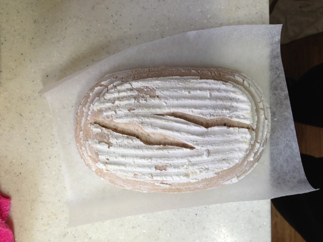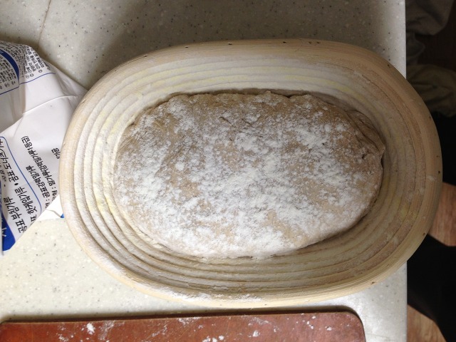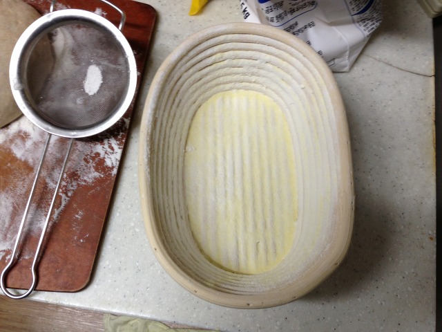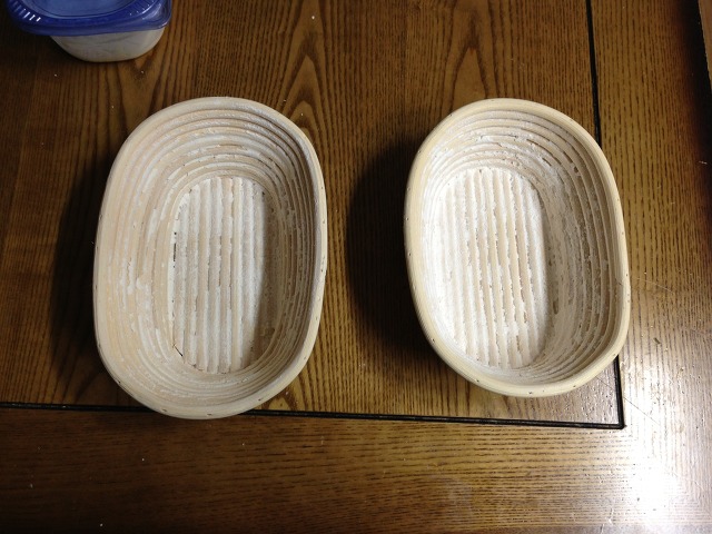 1차 발효가 끝난 반죽을 넣어서 2차 발효를 시킬 반느통을 준비합니다. 이베이에서 무료 배송으로 개당 10불 정도주고 산 반느통입니다. 특유의 무늬를 만들어 주고 통기 효과로 발효를 도와준다고 하는데 저는 순전히 뽀대용으로 샀습니다. 저런거 없이도 빵 더 잘 굽는 분들도 많습니다.