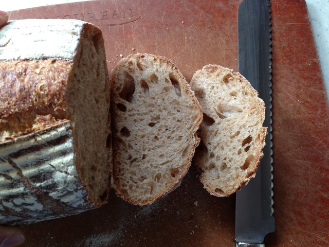 충분히 식힌 후 잘라본 모습입니다. 겉은 바삭 속은 폭신 쫀득.. 시큼하고 구수한 맛과 향이 군침 돌게 하네요 ^^