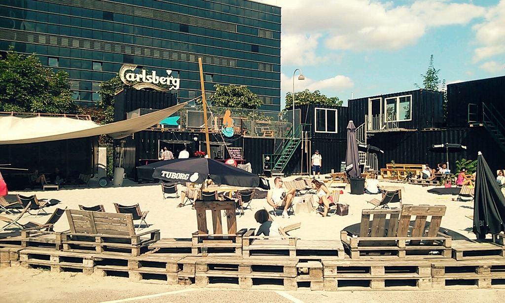 여기는 칼스버그 본관 주차장인데 여름 날 좋은 주말에 모래를 투하해서 인공해변 같은 분위기를 조성해놨답니다.