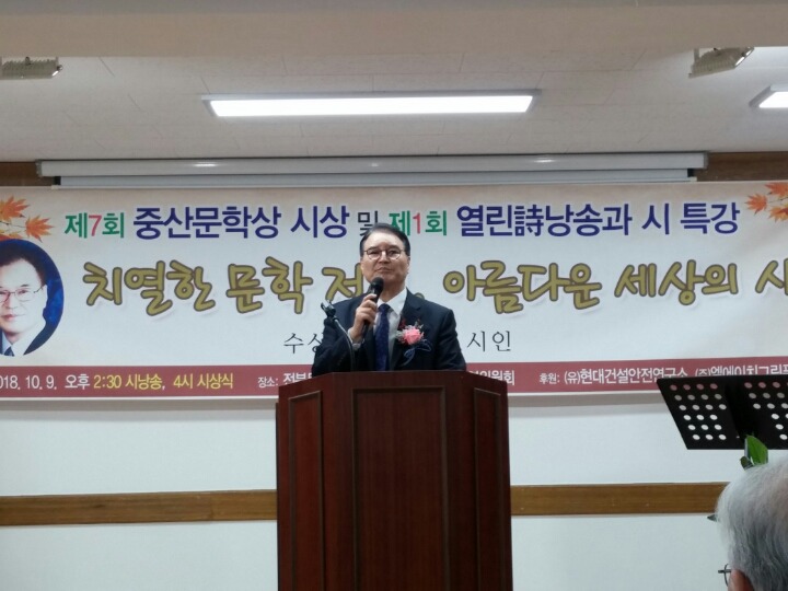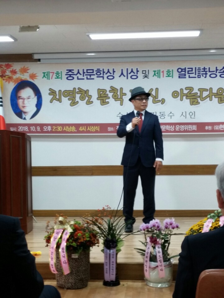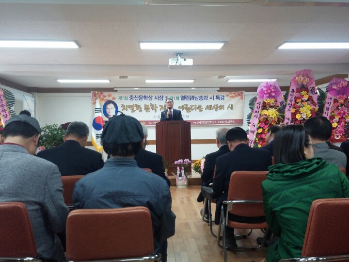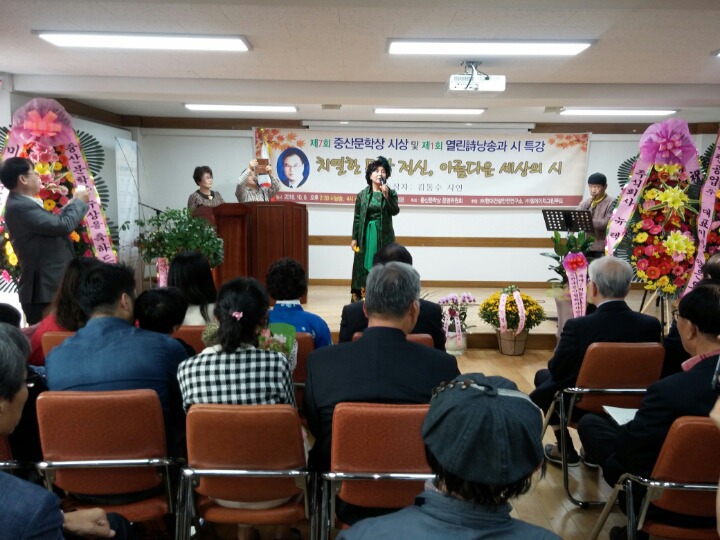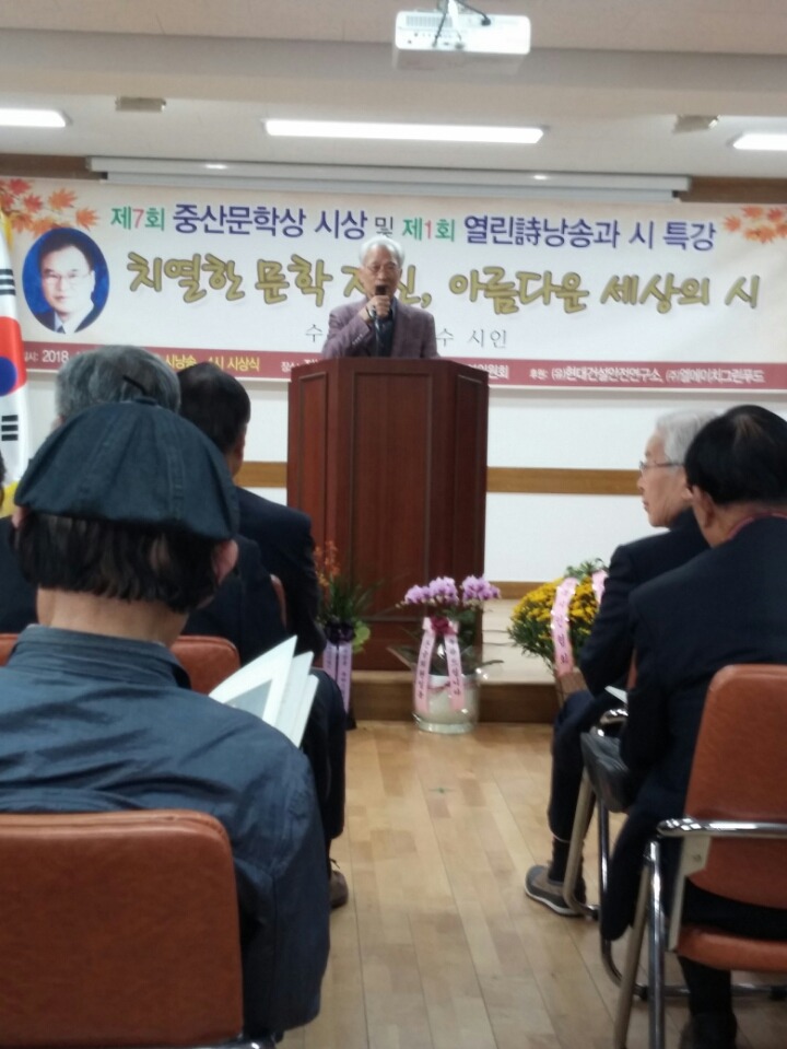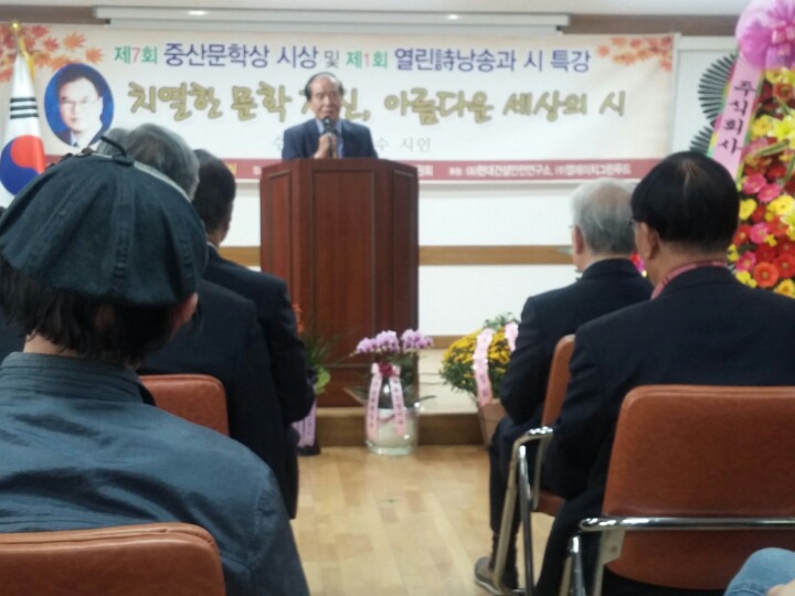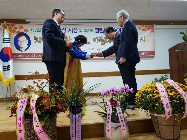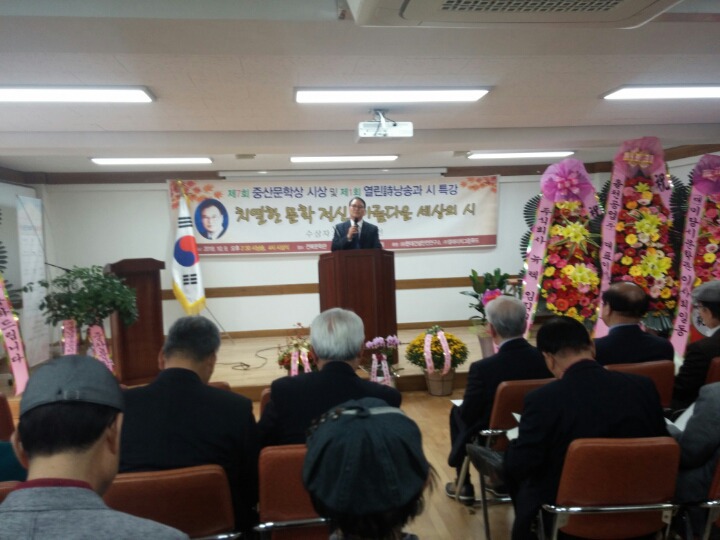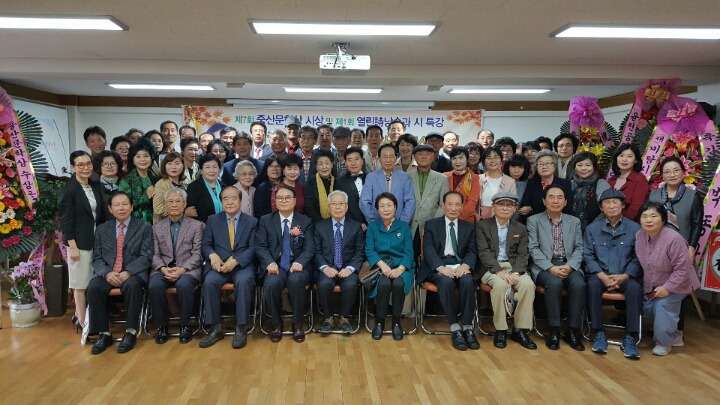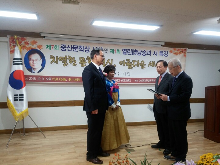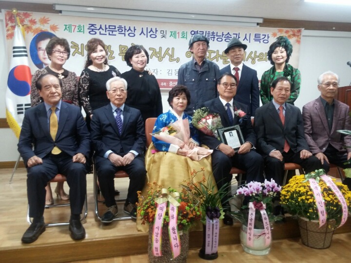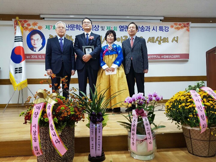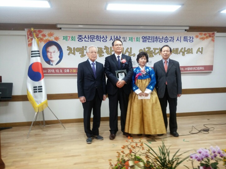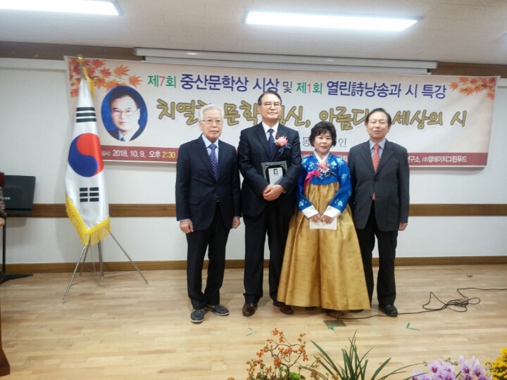 중산 이운룡시인님.김동수회장님과 사모님. 정병렬 시인님(시계방향)