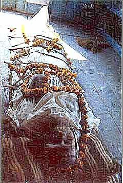 (사진: 바라나시 -화장을 기다리는 바라문, 유족들은 카매라를 든 외국인에게 사진을 찍으라고 시체를 흔쾌하 개방한다)