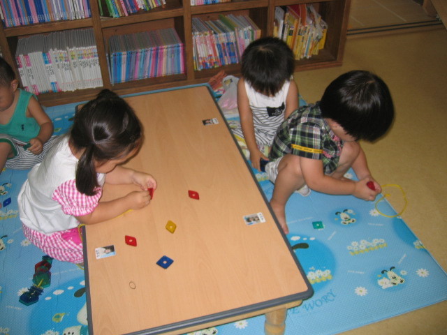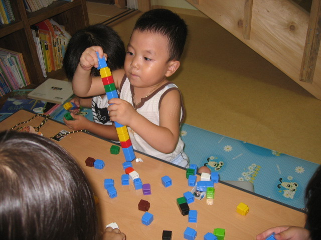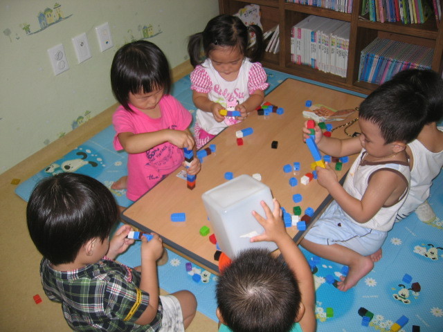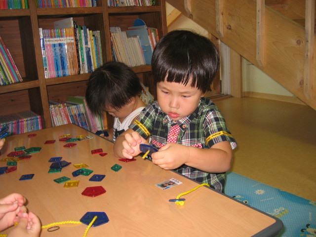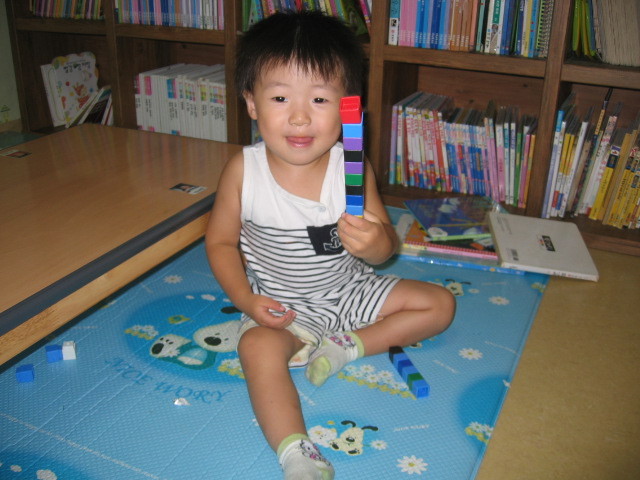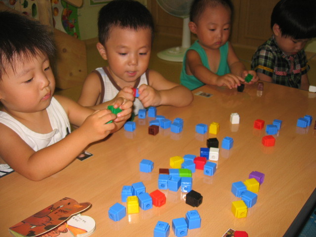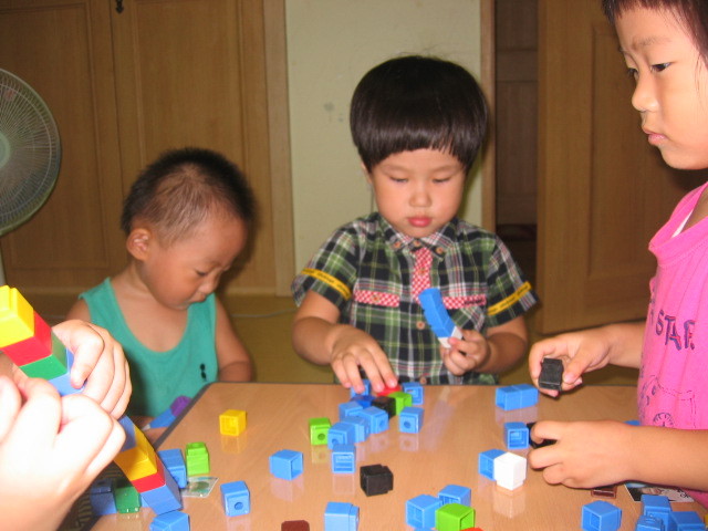 본인도 아는지 7개정도 끼우고는 교사에게 다가와서 "해줘 해줘"한다.