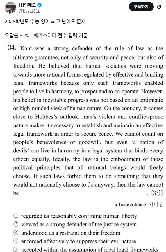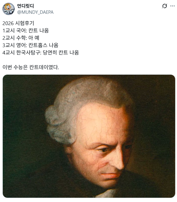 영어에 나온 칸트문제가 이번 최고 난이도 문제였다고 함