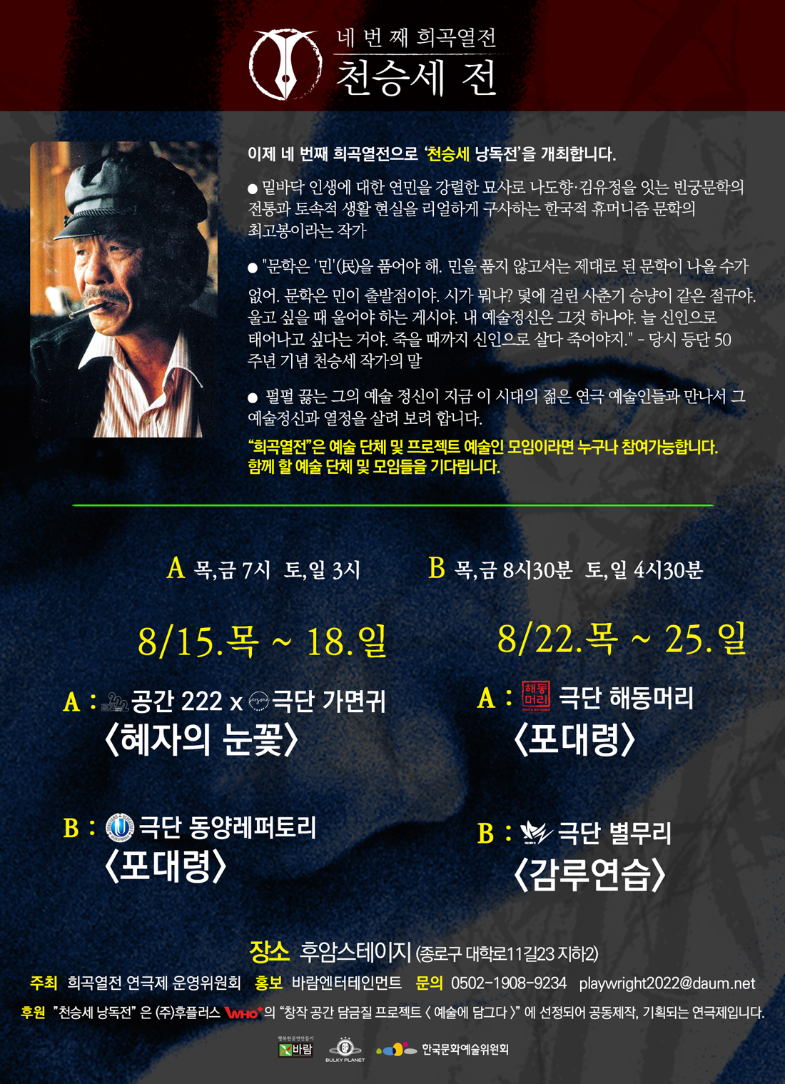 네 번째 희곡열전 : 낭독 천승세 전 - 수상작들만 2025년에 실연 지원