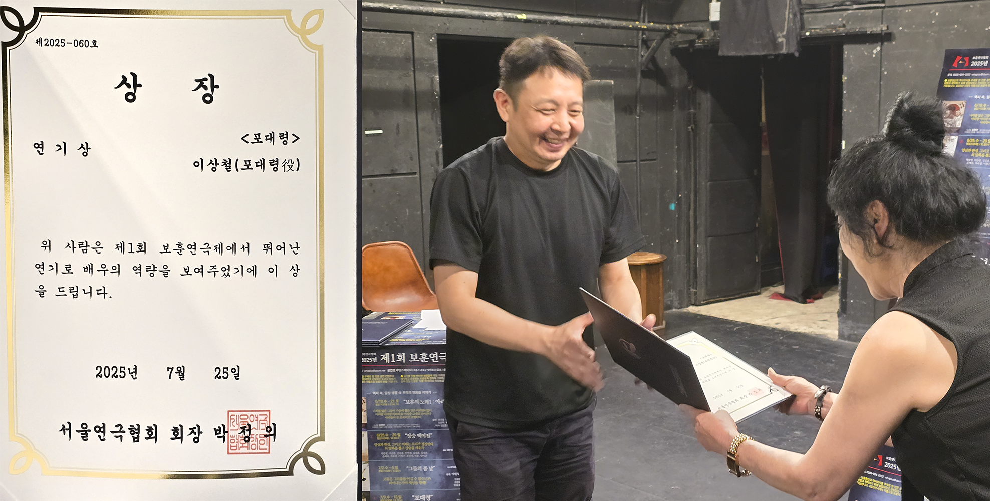 포대령 역의 이상철 배우가 연기상을 수상합니다.