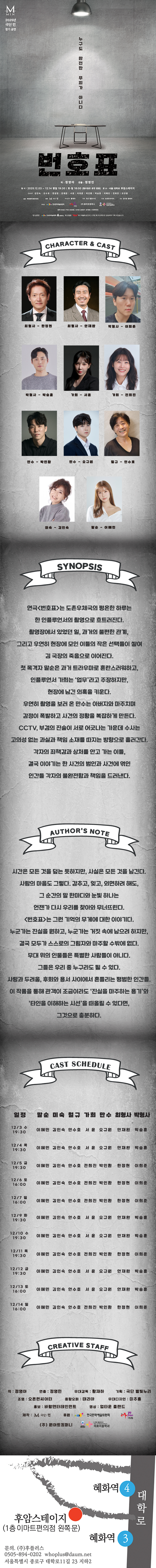 하반기에는 "번호표-누구도 완전한 무죄가 아니다"를 준비합니다.