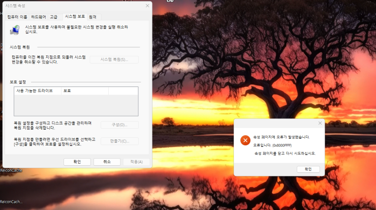 아이콘이 전부 하얗게 되거나 기본 모양으로 변해버린 현상, 그리고 "속성 페이지에 오류가 발생했습니다"라는 메시지까지 함께 떴다면, 이건 아이콘 캐시 손상 또는 Windows 시스템 파일 일부 오류로 인한 문제일 가능성이 큽니다.