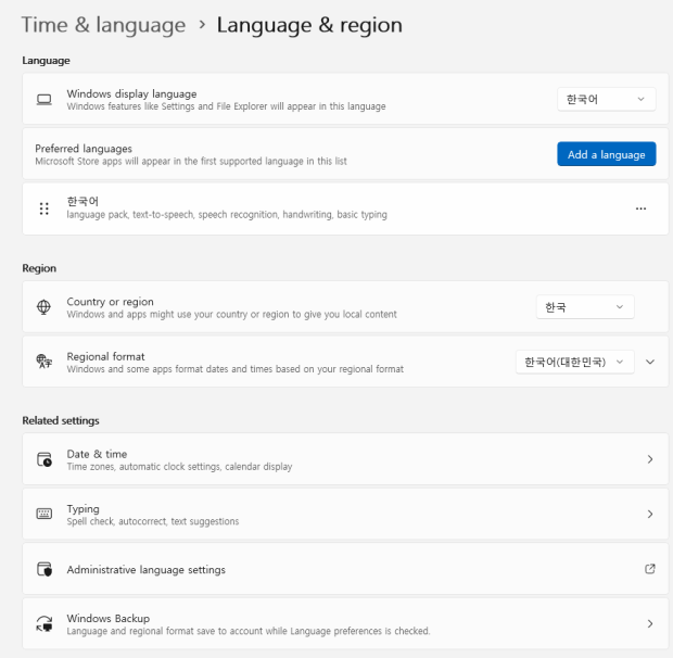 [PC사용팁]윈도우 11 기본 시스템 UI 언어 변경이 안됩니다