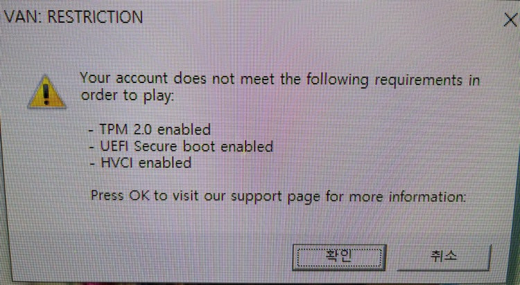 이 오류는 Vanguard(발로란트의 보안 시스템)가 제대로 작동하기 위해 아래 3가지 기능이 활성화돼 있어야 발생하지 않아요.