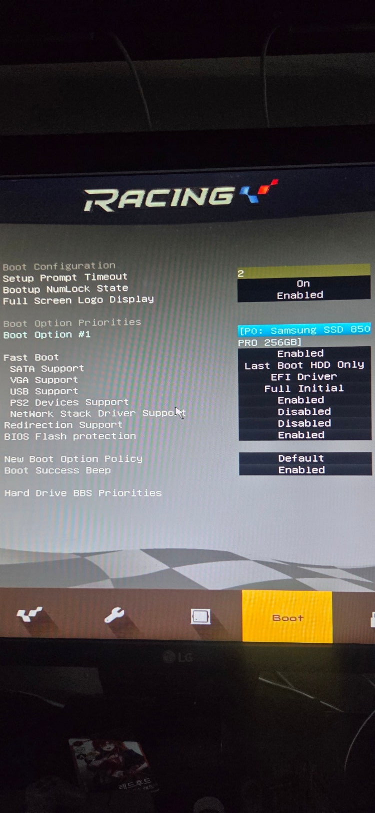 사진상에서 부팅순위 옵션을 설정해줘도 계속 저러구요