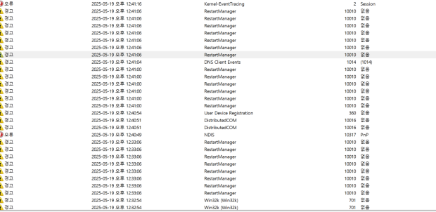 이벤트 뷰어에 반복적으로 기록된 RestartManager 로그는 일반적으로 프로세스 충돌이나 비정상 종료, 또는 디바이스 드라이버 재시작과 관련이 있습니다.