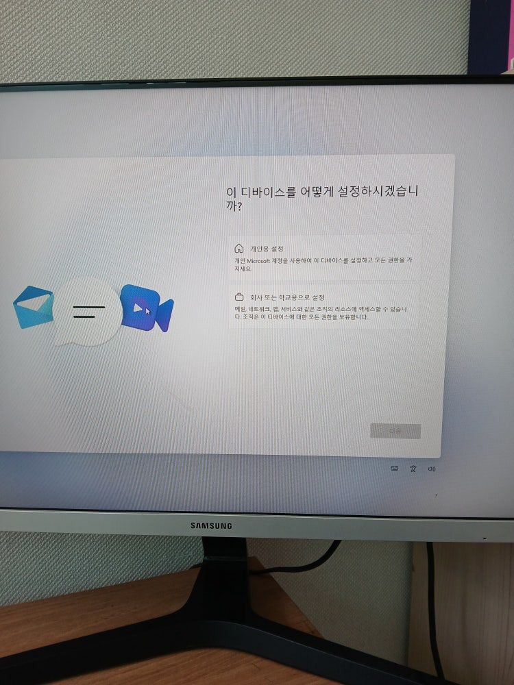 "회사 또는 학교용 설정": 회사나 단체에서 사용하는 PC라면 선택