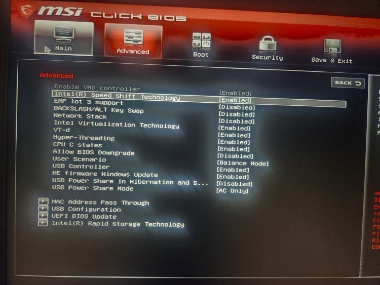 빠른 부팅 설정은 현재도 잘 되어 있습니다 (Fast Boot: Enabled)