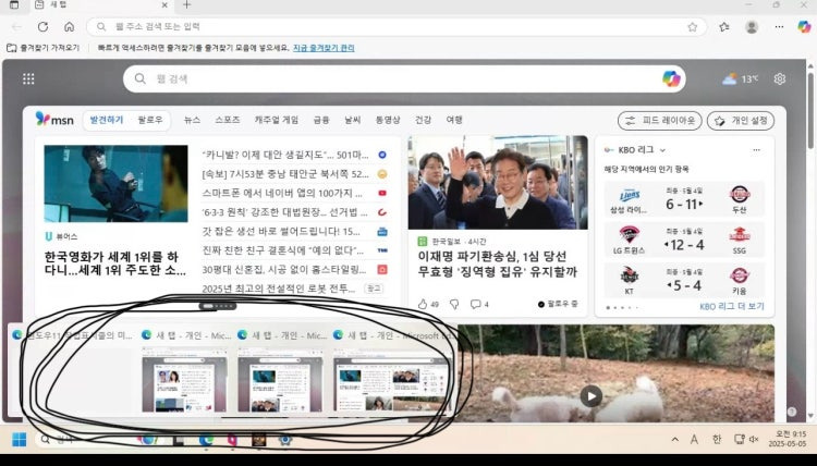 제 컨퓨터가 윈도우11인데 사진에 보시면 밑에 동그라미친 4개의 화면이 현재화면 클릭을 하던 키보드를 만지던 안없어지고 보여야 하는데 현재화면 클릭을 해버리면 밑에 화면(썸네일??)이 사라지는데 계속 지속되게 하는 방법이 있을까요??