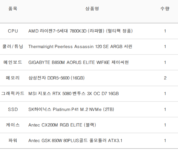 시스템 사양은 고급 (RTX 4080 / Ryzen 7800X3D)