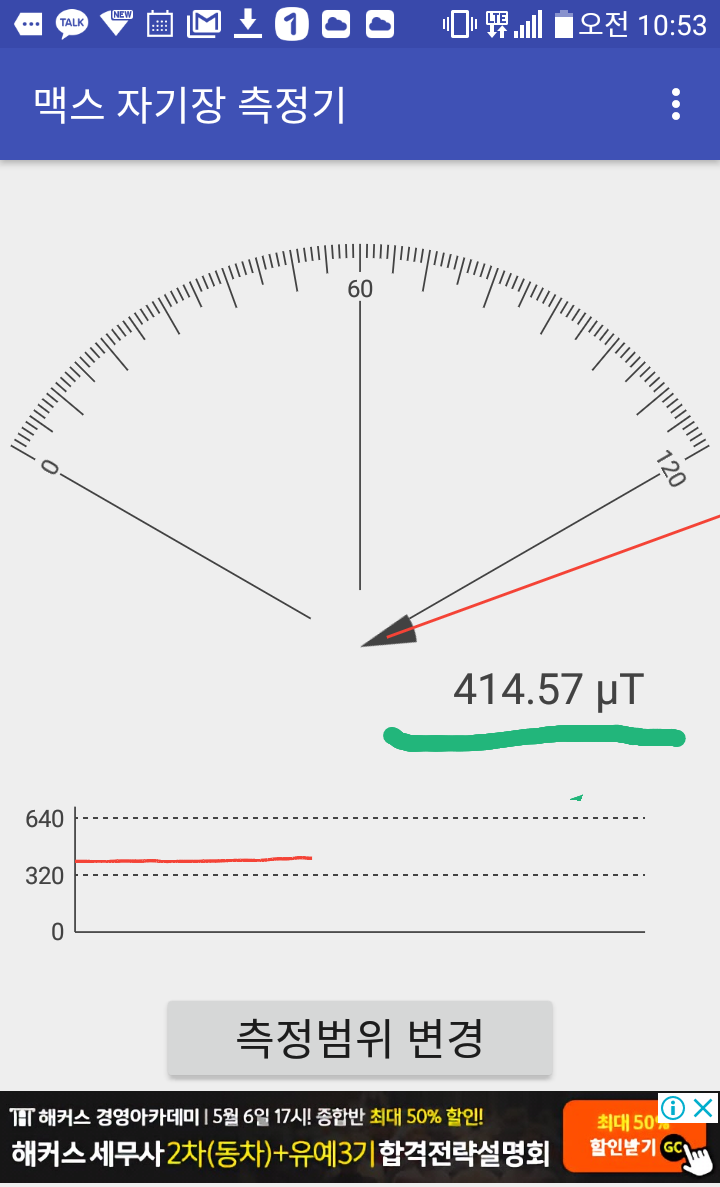 자기장 수치 캡춰 화면을 흐릿하게 만들어 놓고 핸드폰 액정 화면을 흐리게 할 수 있는 것처럼 내 눈도 흐릿하게 할 수 있다는 듯이 몸소 보여주는 개씨발 가해자놈들.