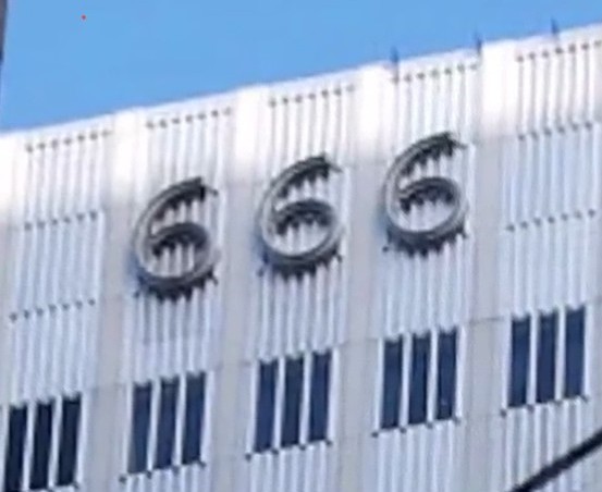 666 표시가 선명한 자레드 쿠시너의 건물, 이 빌딩에는 루시퍼(Lucifer)를 연상시키는 Lucent Technologies라는 회사가 입주해 있는데 이 회사가 바로 짐승의 표로 쓰여질 것이 확실시 되는 베리칩(RFID 칩)을 개발한 회사이다
