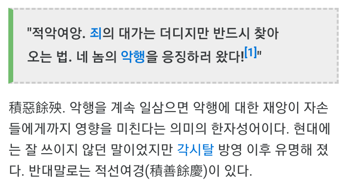 작성자neoelf0813 (인천) 작성시간 20.09.16 쌓을 적 악할 악 남을 여 재앙 앙