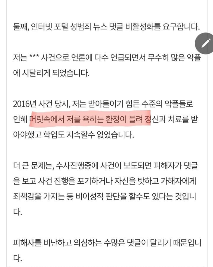 피해자가 얼마나 끔찍한 고통을 견디며 그래도 용기내어 청원을 쓰게 되었을지....