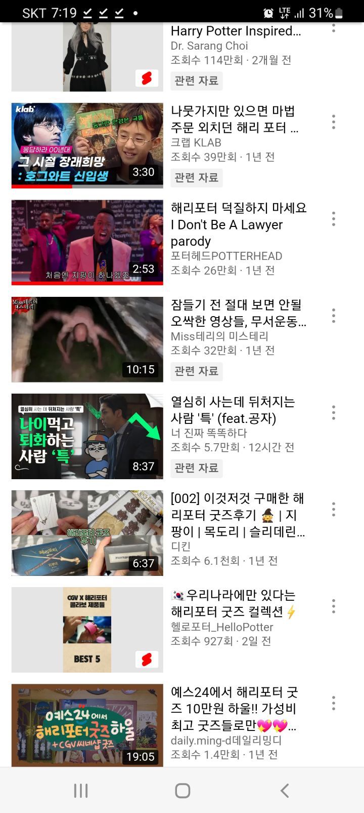 최근에 일본 작품은 당분간 휴덕하고 외국 작품들에 버닝해보고 싶어서 뭘 파야하나 하다가 완결을 못 본 작품들중에 해리포터가 있었다. 그래서 검색 결과물을 보는데 이상한 동영상이 추천된다.