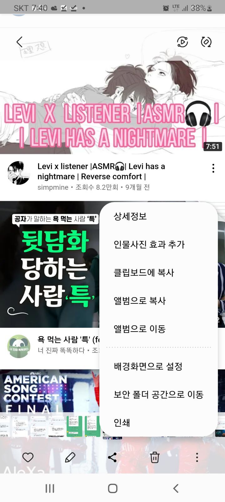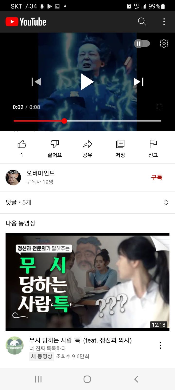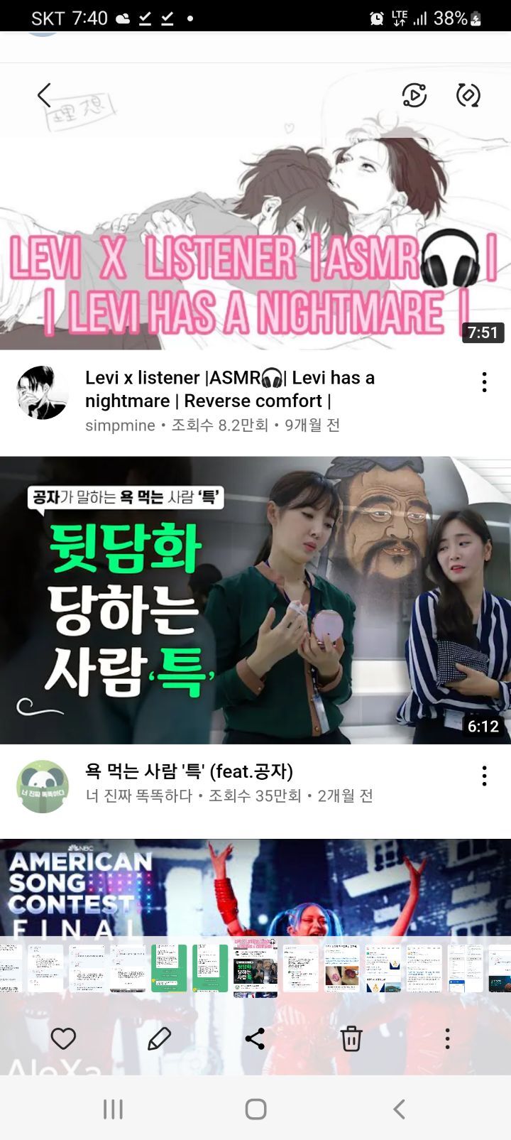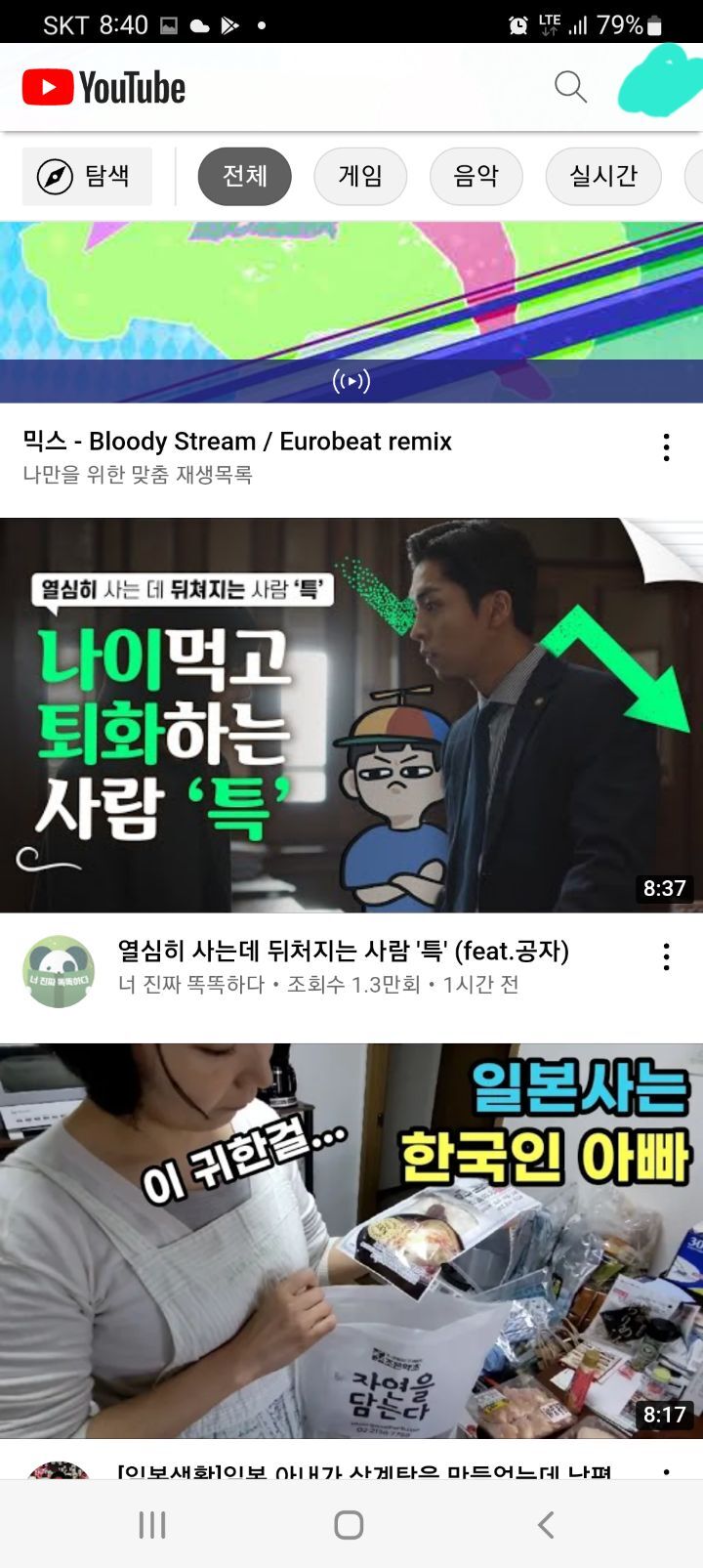 이 사진은 다른 동영상 보다가 누가 댓글 알바인지 댓글유저들의 동영상을 하나하나 눌러보다가 추천받은 영상이다.
