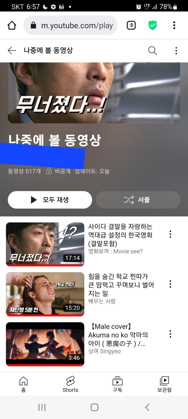 2개의 동영상 오늘 추천받은거에요.
