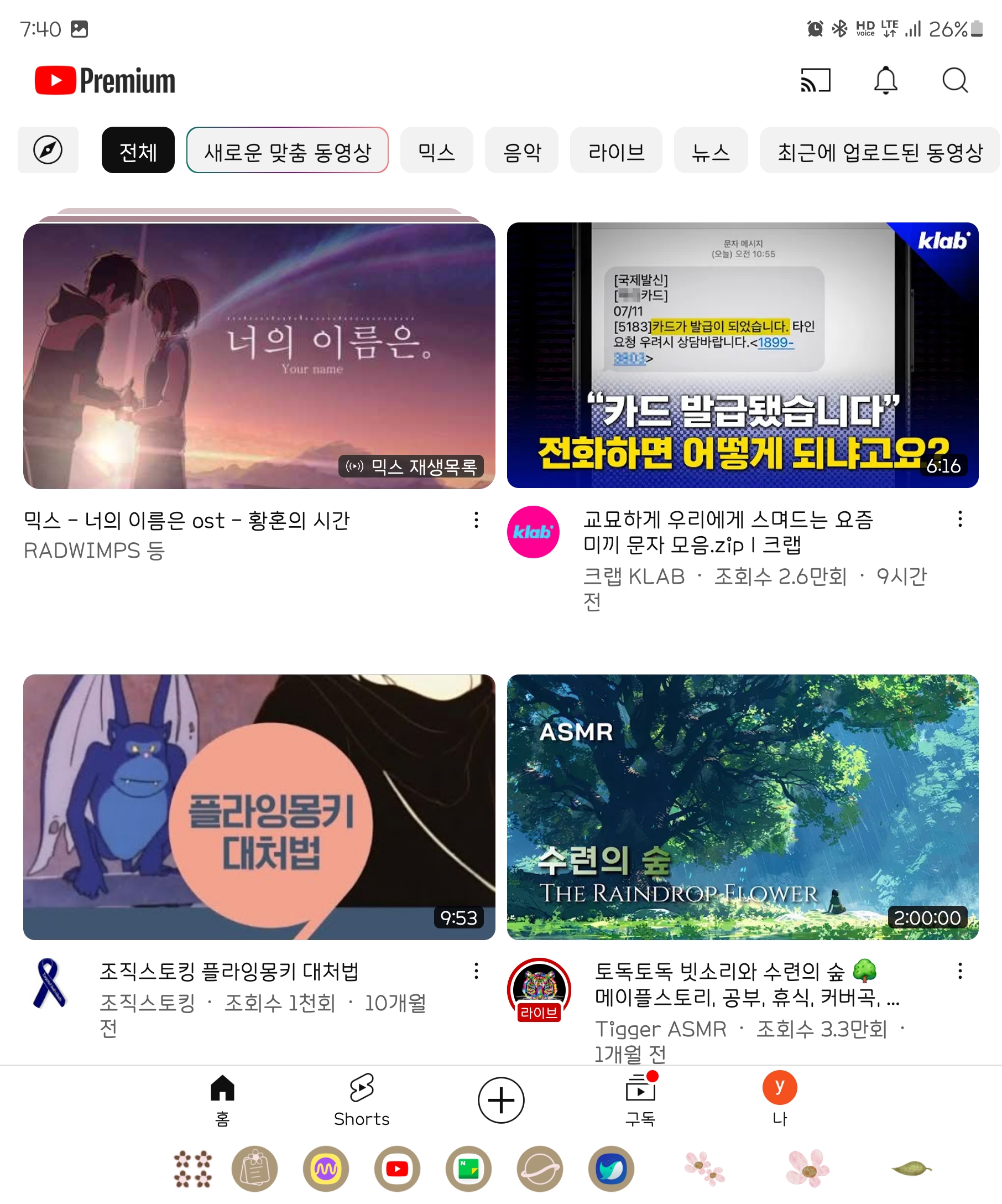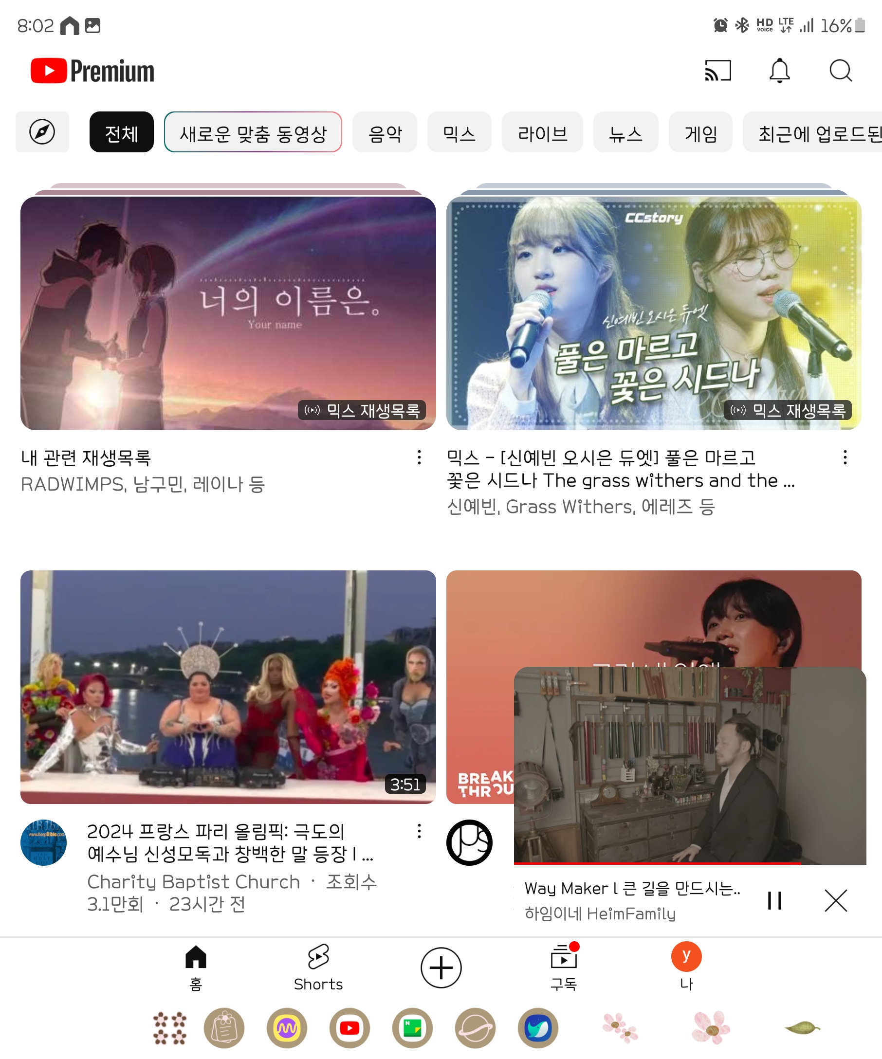 다른 영상 하나가 알고리즘 첫번째로 계속해서 추천되는 때가 잦습니다.