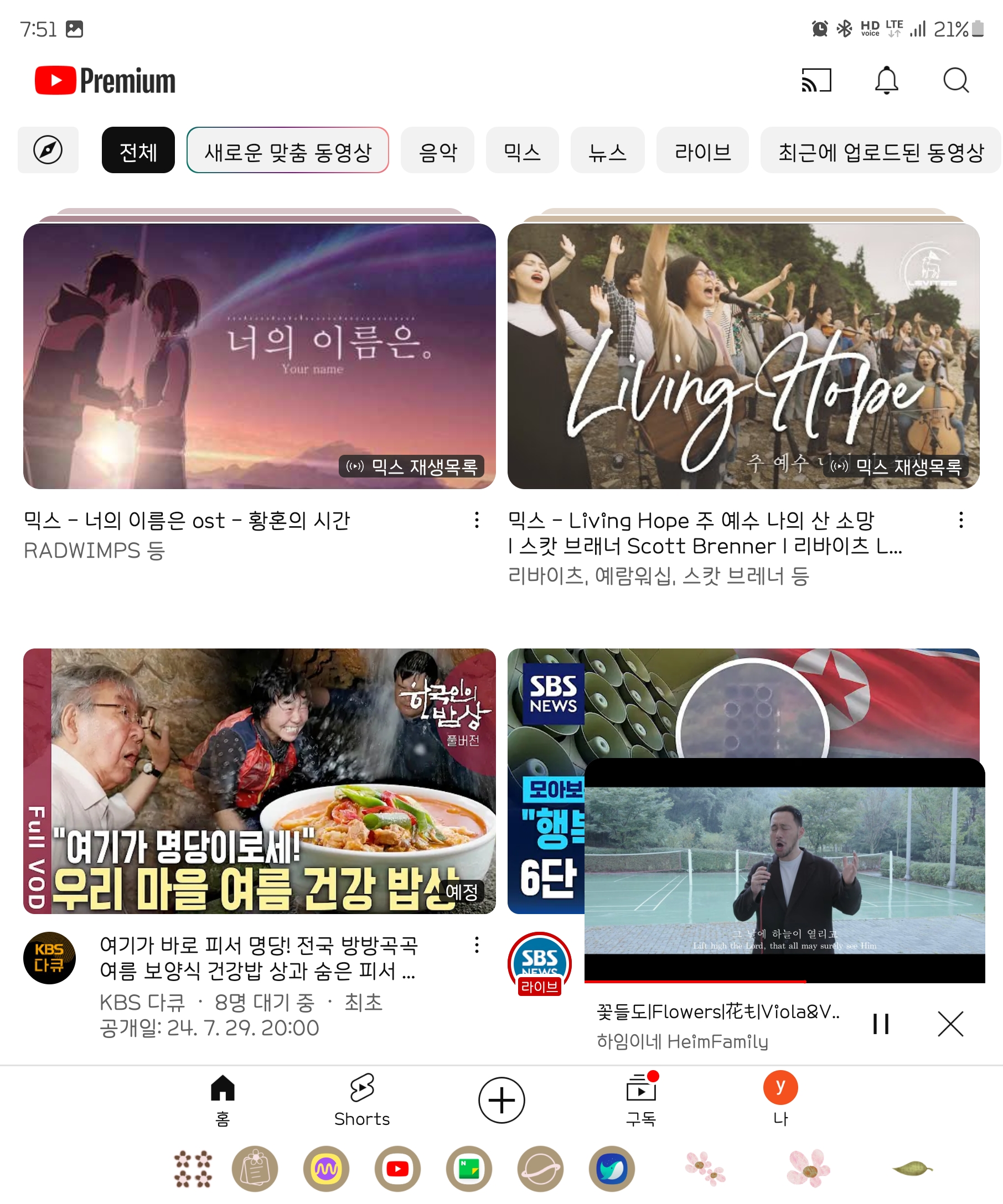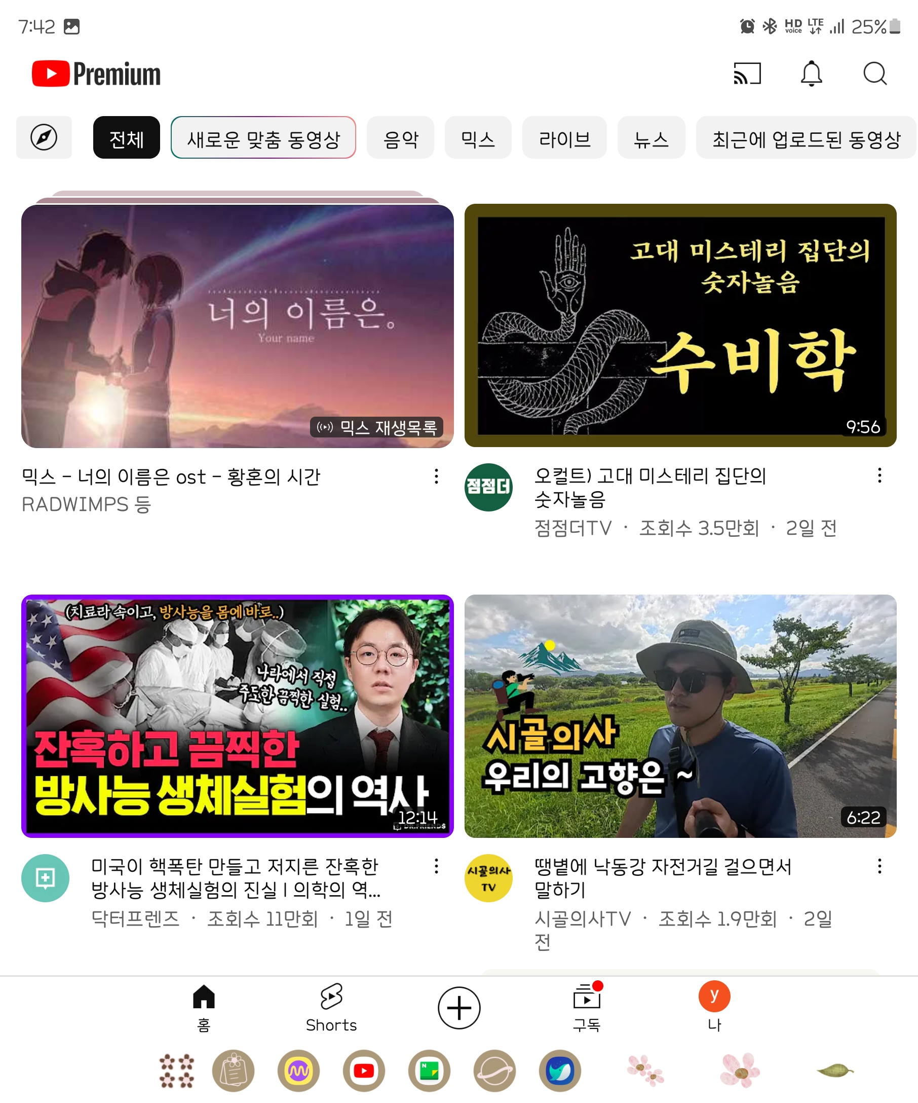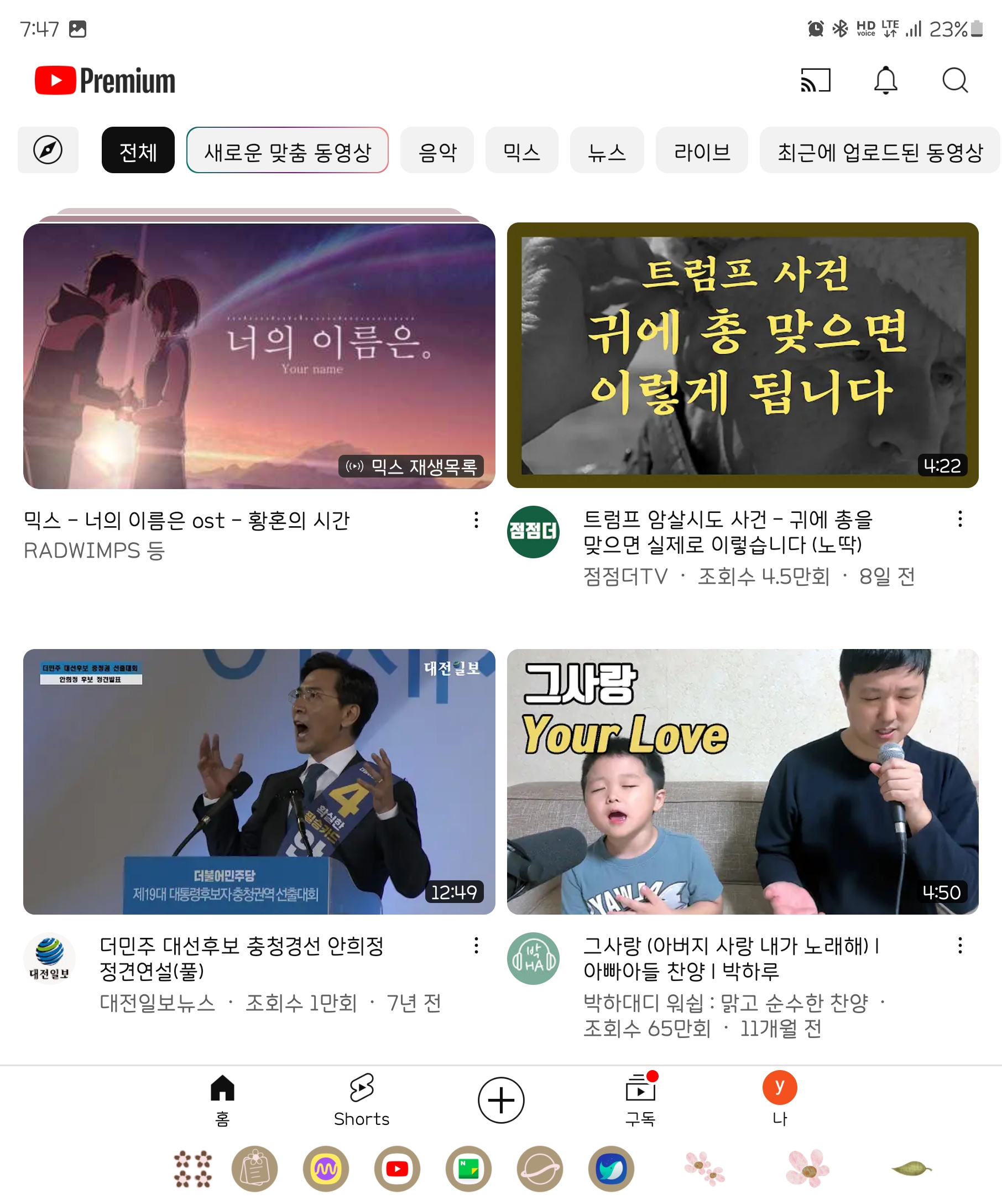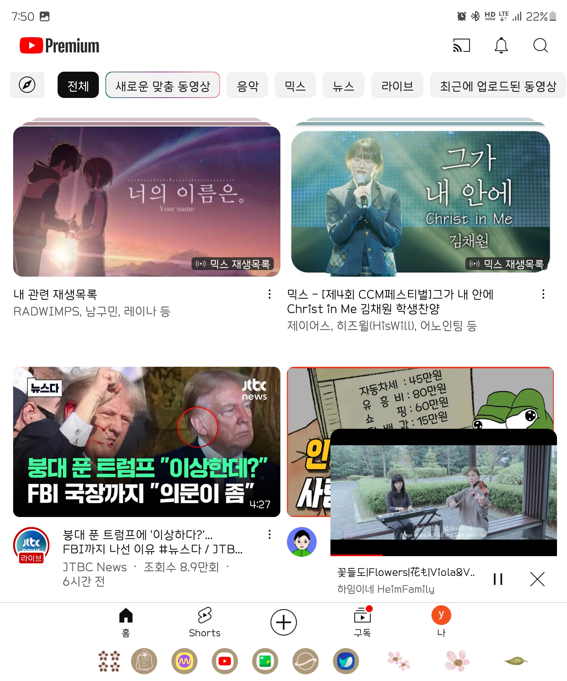 종교와 관련된 특정 유튜버 하나의 영상물이 가장 첫순위에 추천되는 때도 있고 특정 채널의 특정 뉴스로 같은 상황이 반복되기도 합니다.